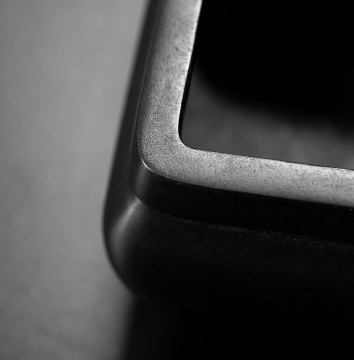 无论瓷器还是铜炉,方形器物的制作难度都远远大于圆形器物。圆是以曲线表达,以相对的方式呈现造型,曲折有度,顺其自然,器型上的不完美可以被自然的过渡所掩饰;而方,是以直线条来呈现,直边、直角、平面,是否周道,一眼即可看出。