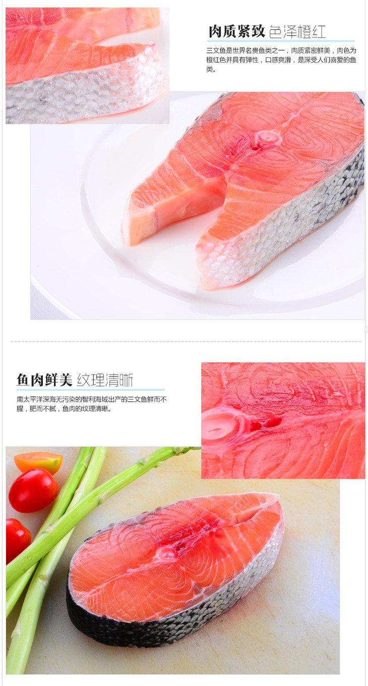 【特价99元同城包邮】智利三文鱼段,99元/750-800g/2-3块/组,非刺身/适合熟食