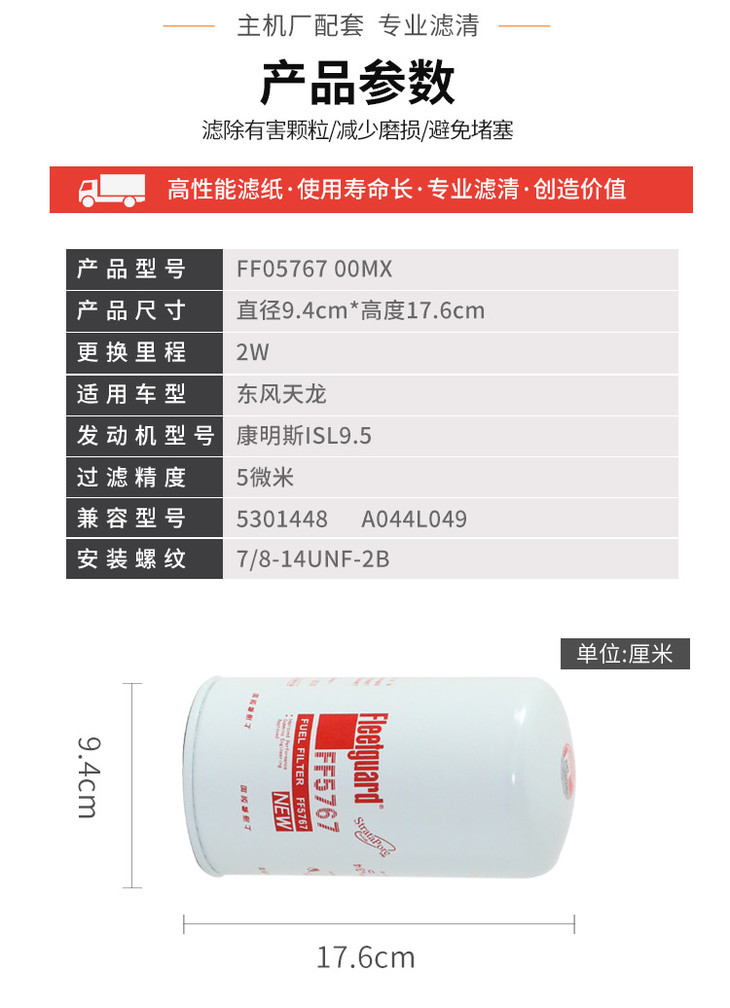弗列加燃油滤FF05767 燃油滤清器 5微米 适用东风天龙 康明斯ISL9.5 卡车之家