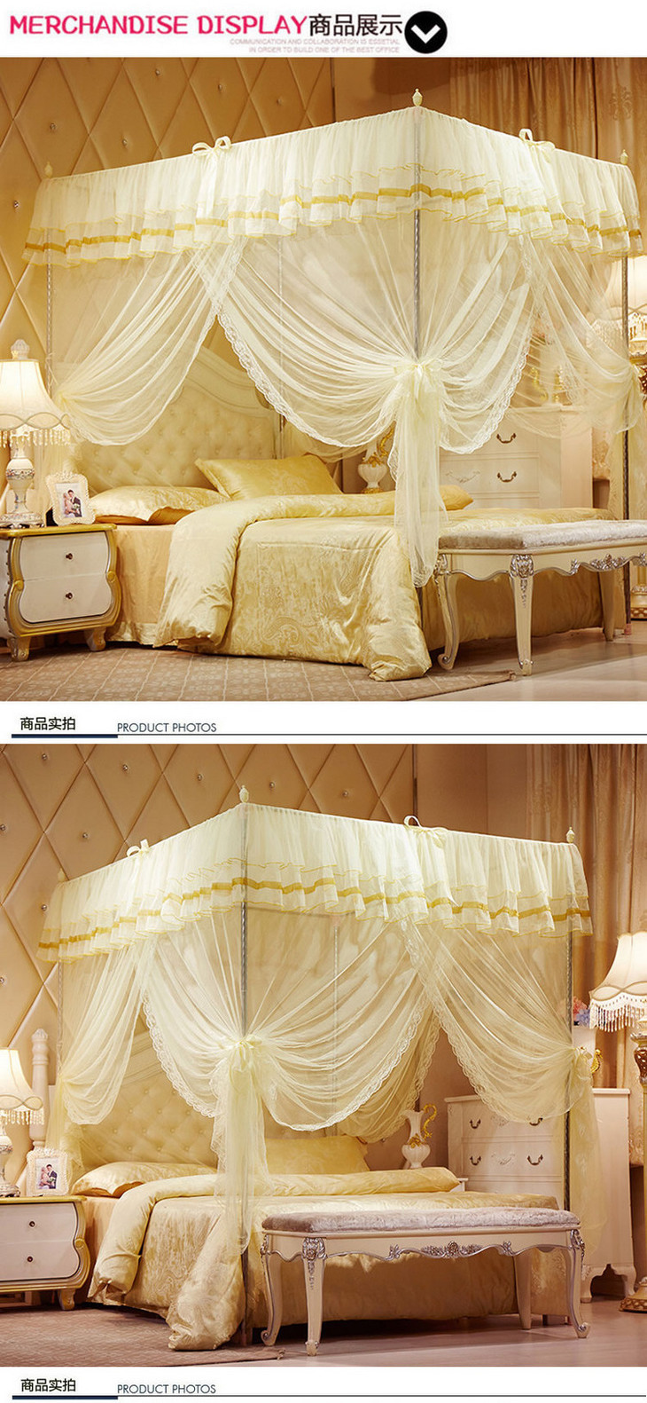 【蚊帐】*高贵优雅宫廷落地式三开门方顶公主蚊帐