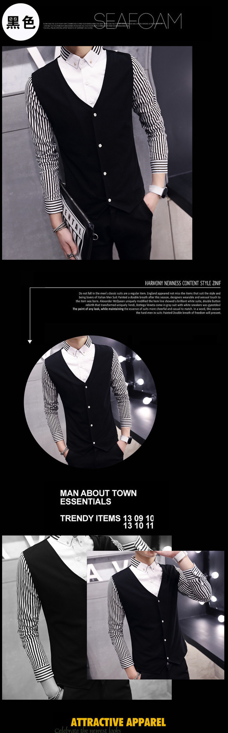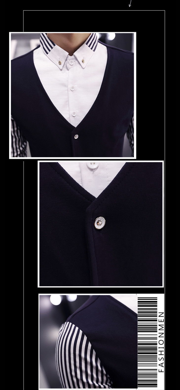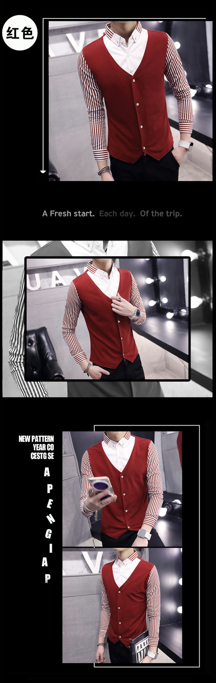 【服饰鞋包】秋季男装长袖T恤假两件套 秋季修身潮男套头透气男式长袖t恤