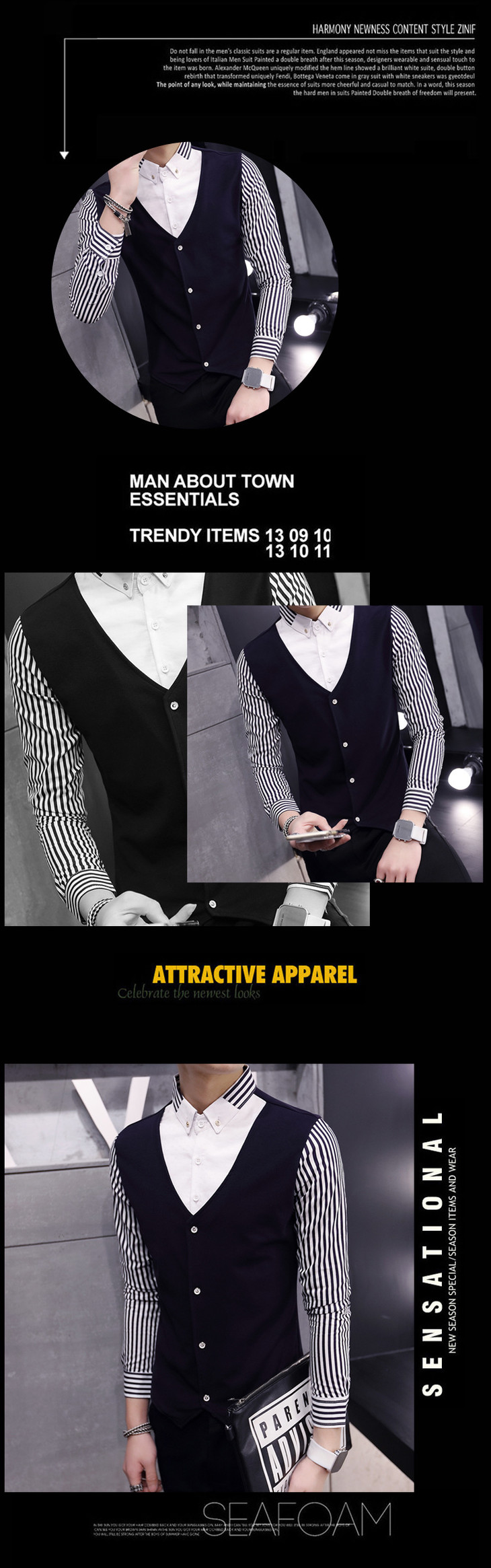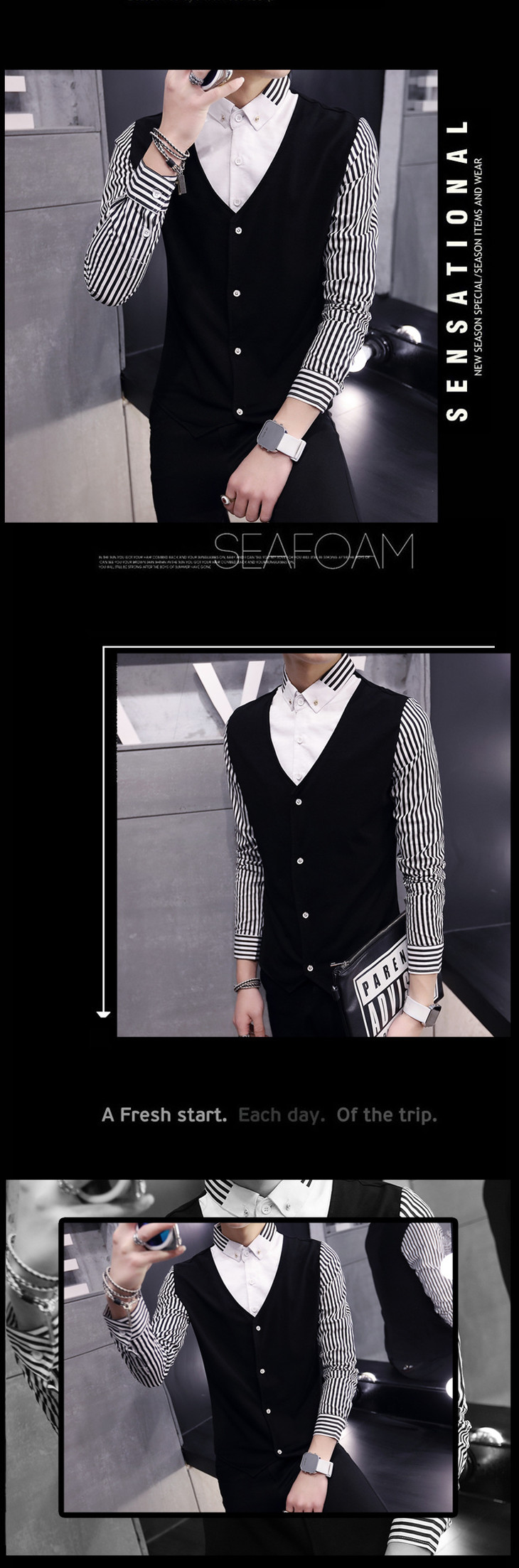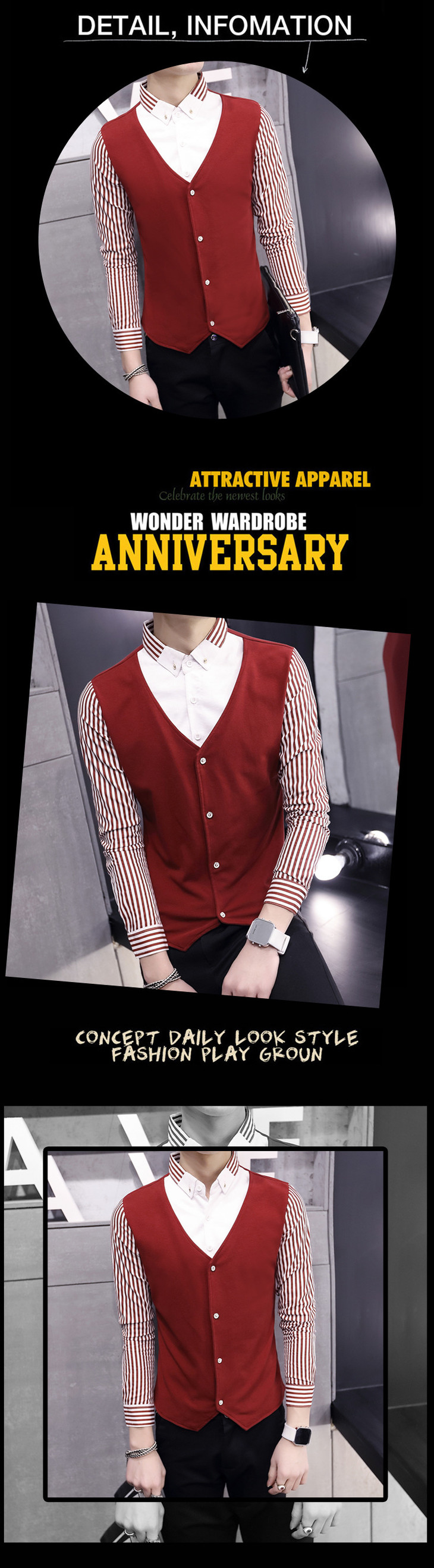 【服饰鞋包】秋季男装长袖T恤假两件套 秋季修身潮男套头透气男式长袖t恤