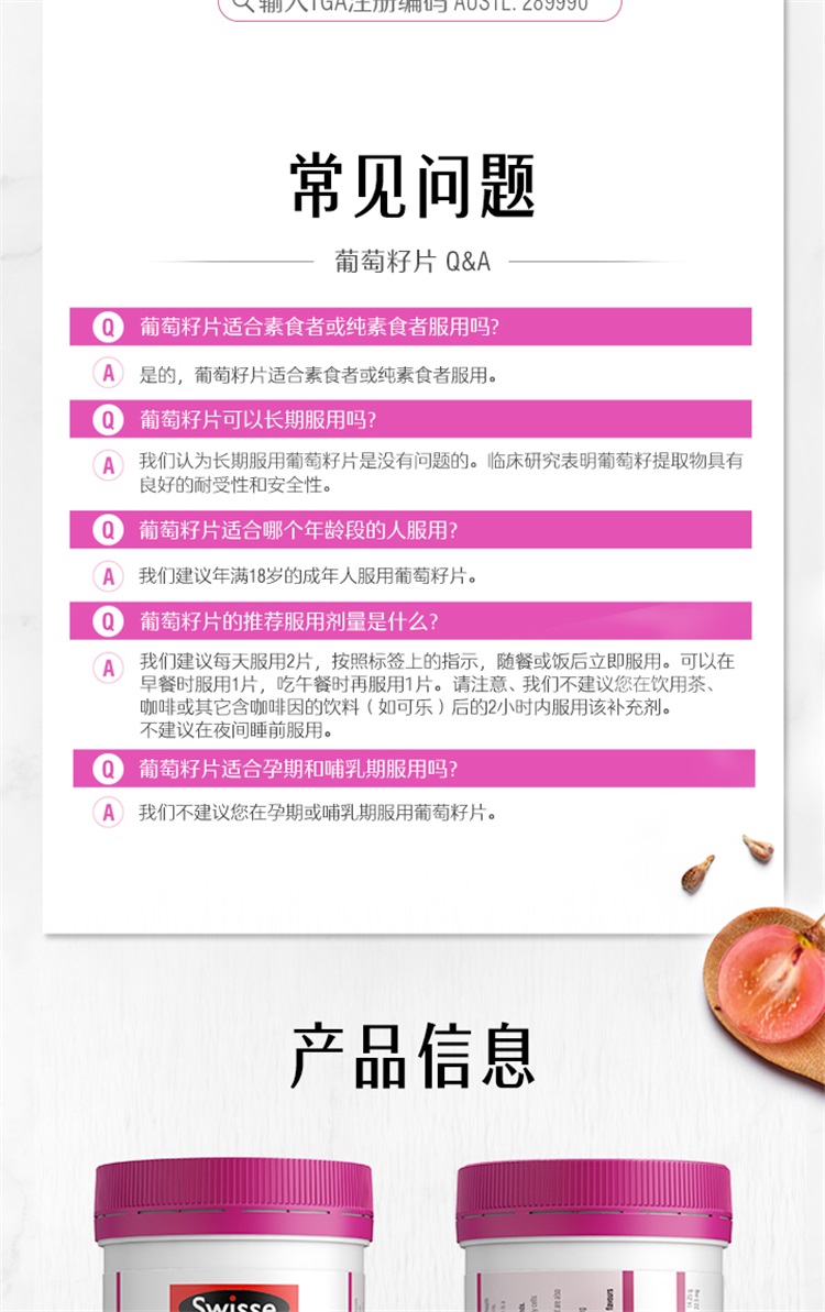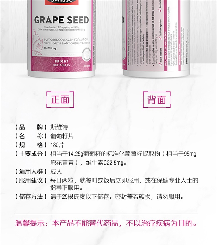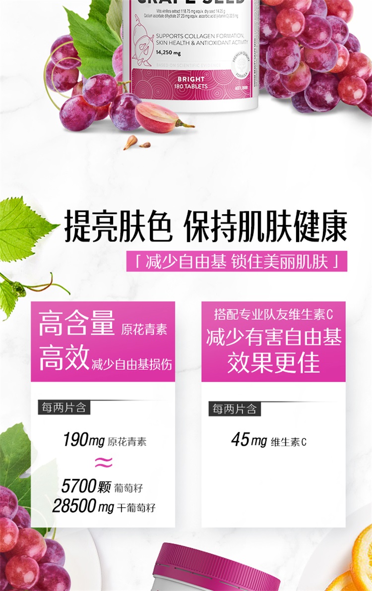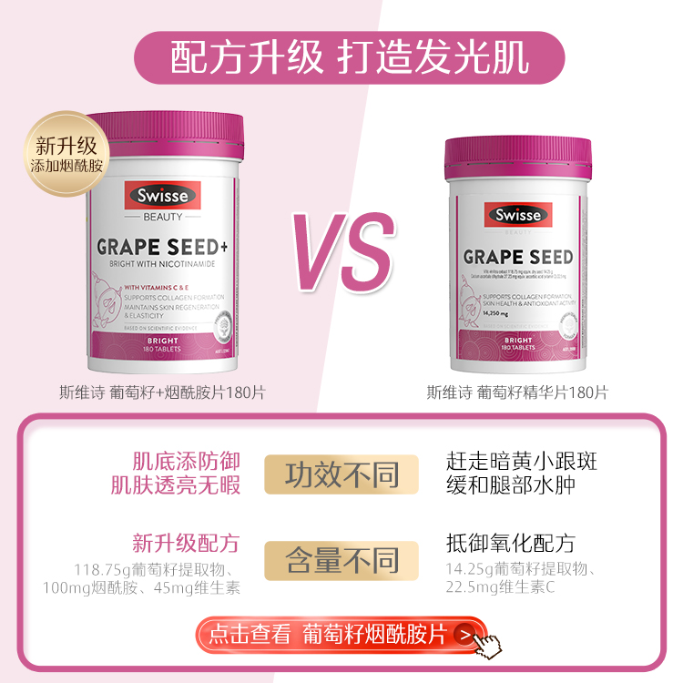 Swisse斯维诗葡萄籽片精华提亮180粒*2烟酰胺原花青素维生素vc片