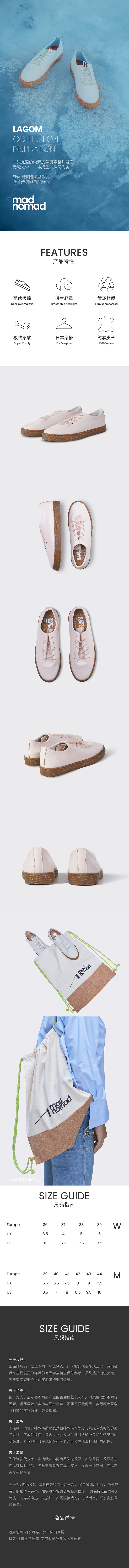 madnomad|沙漠粉 Lagom vegan sneakers 素皮软木底鞋