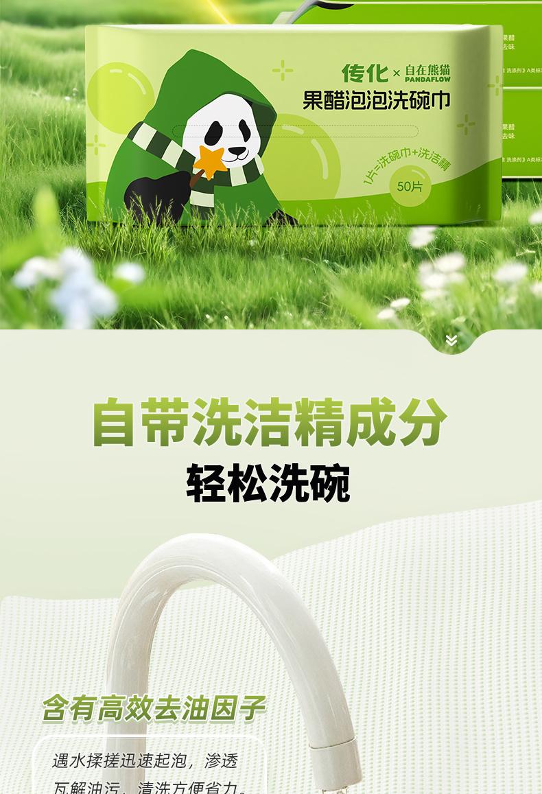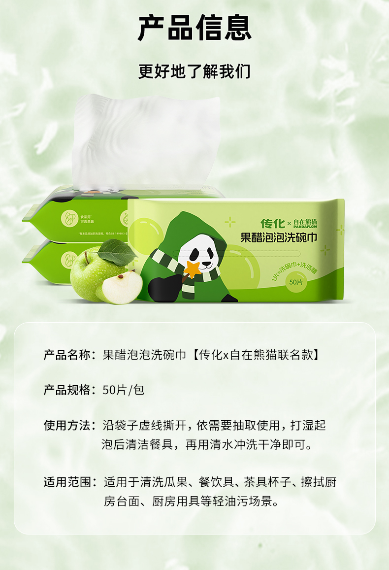 【联名款】传化x自在熊猫-传化果醋泡泡洗碗巾 1包装