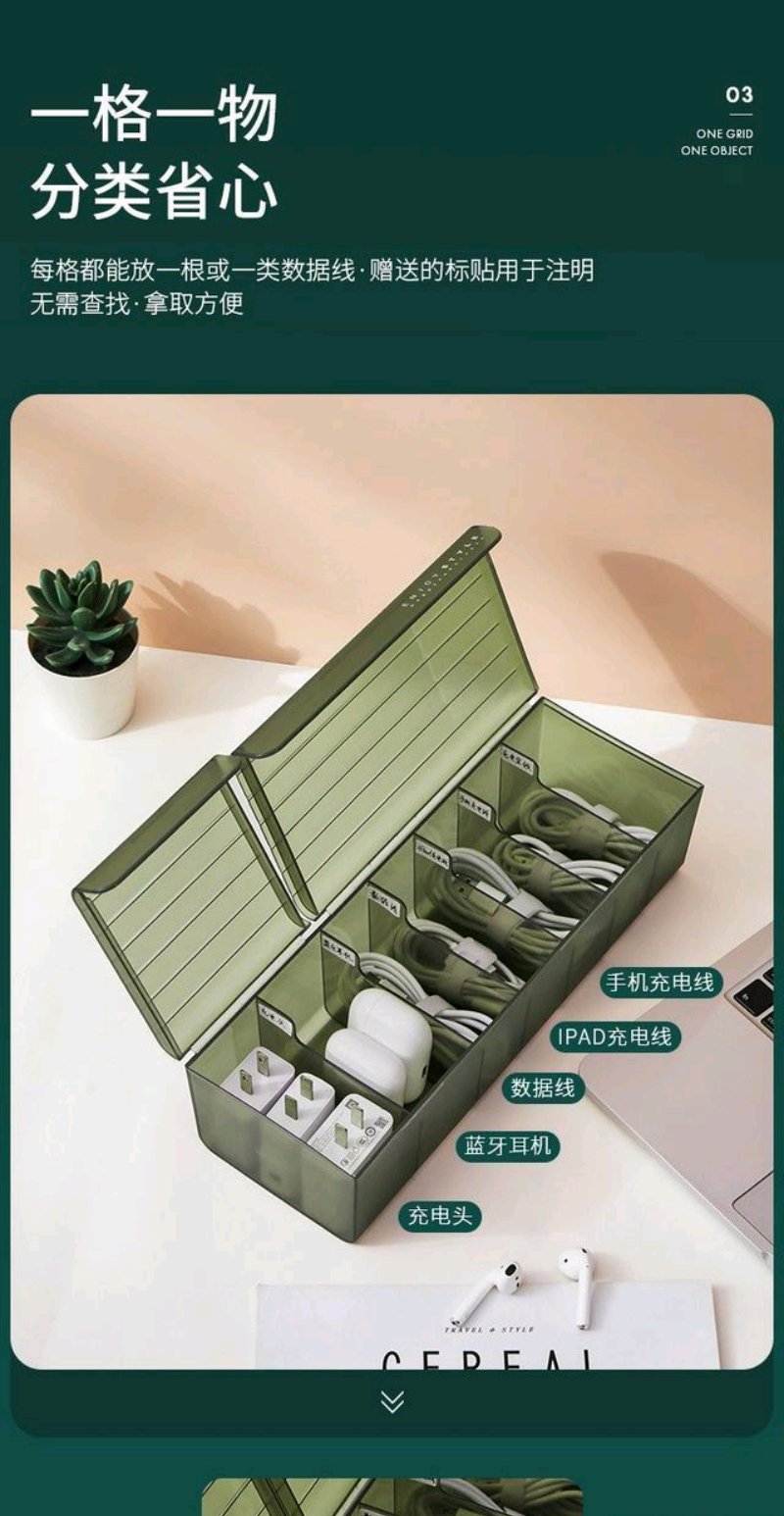 数据线收纳盒 桌面手机充电线数码分类整理神器