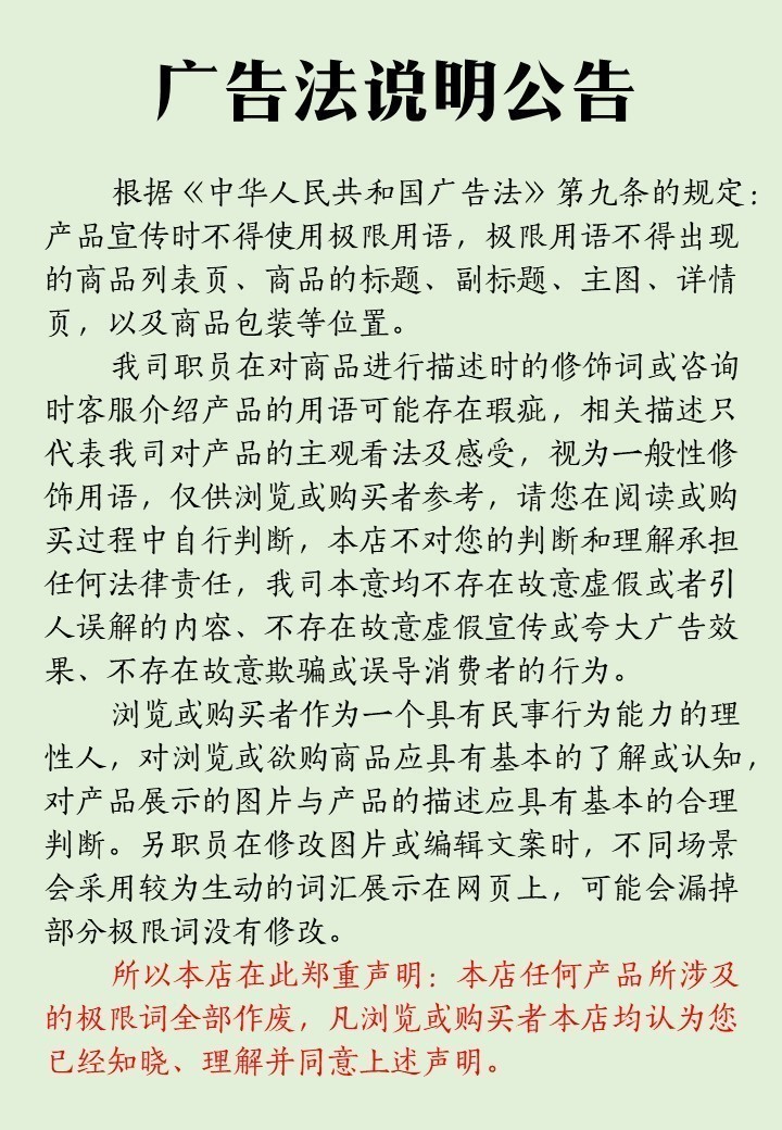 | 售后须知 非理赔范围 1、签收12小时后(肉禽除外),再反映变质情况的不在理赔范围内; 2、生鲜产品自然生长,因个人口感喜好不同,非质量问题不给予理赔,介意慎拍; 3、由于收货人电话关机、停机、电话号码填写错误、收货信息不详等原因导致派件不及时、拒收、退回。 理赔范围 1、运输过程挤压碰撞的严重破损导致无法正常使用; 2、签收后12小时内腐败变质; 3、收到的产品与详情页介绍的信息不符、数量不符、重量不足等; 4、由于极端天气导致派单不及时造成产品变质、破损。 |