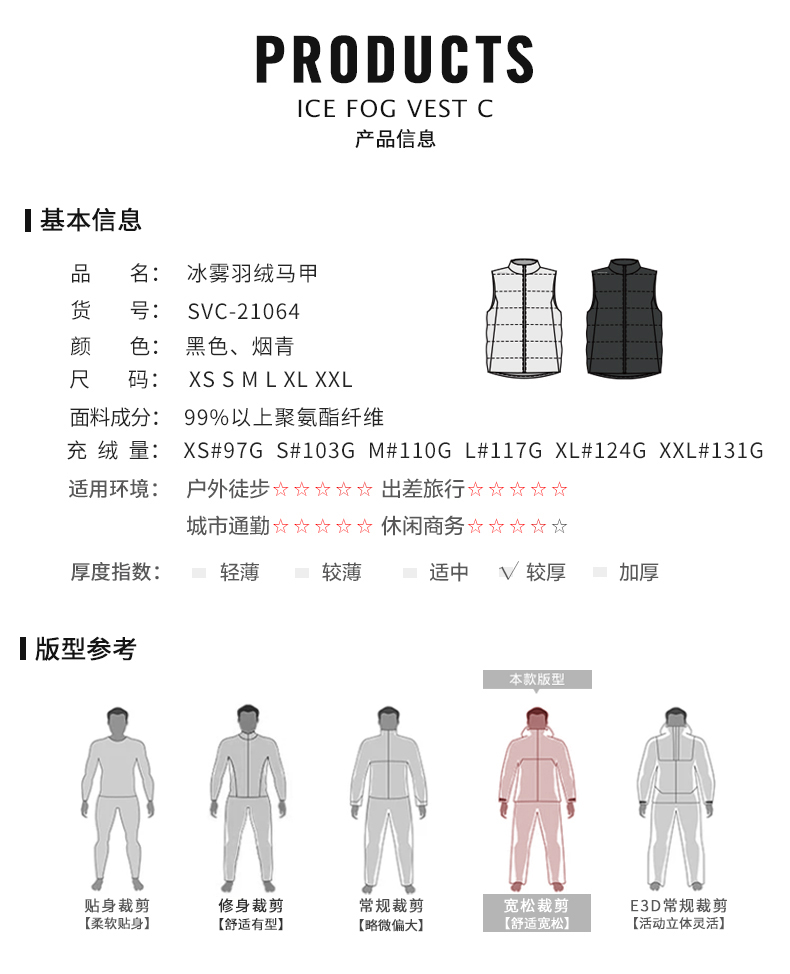 SANFO PLUS冰雾羽绒马甲鹅绒外套男女运动服户外保暖背心 SVC-21064
