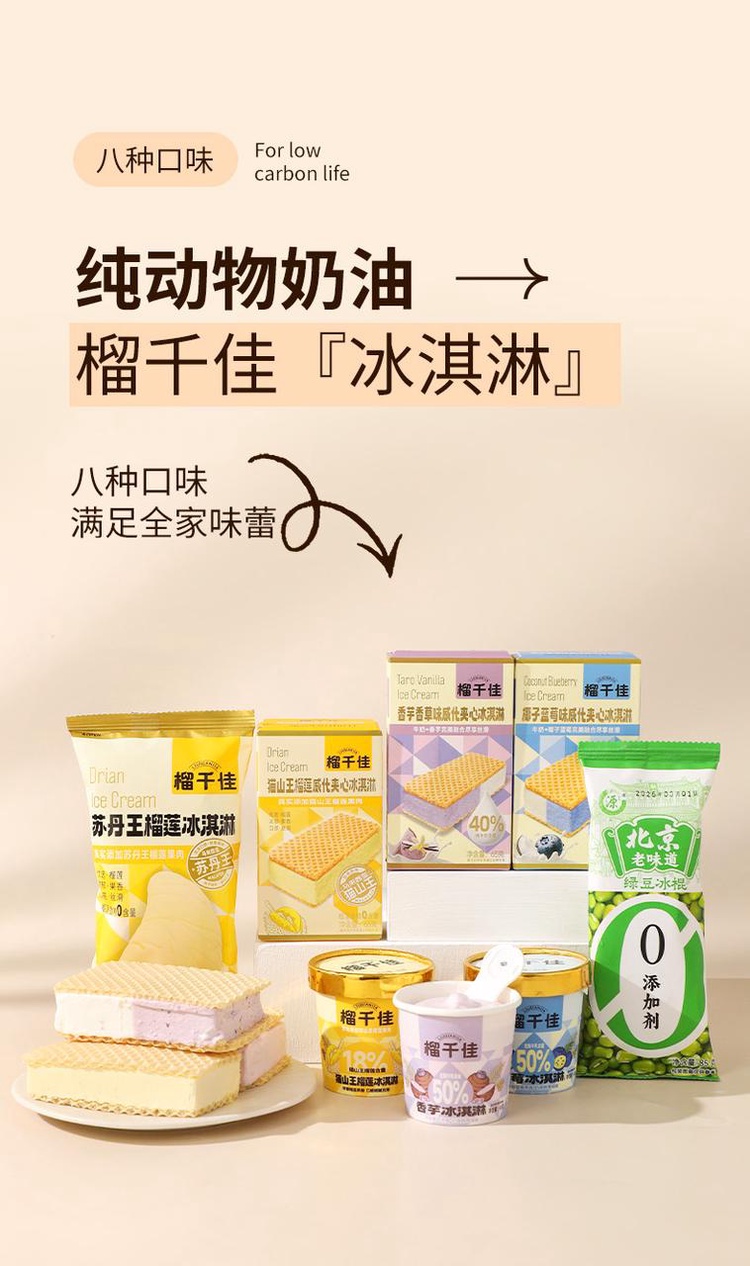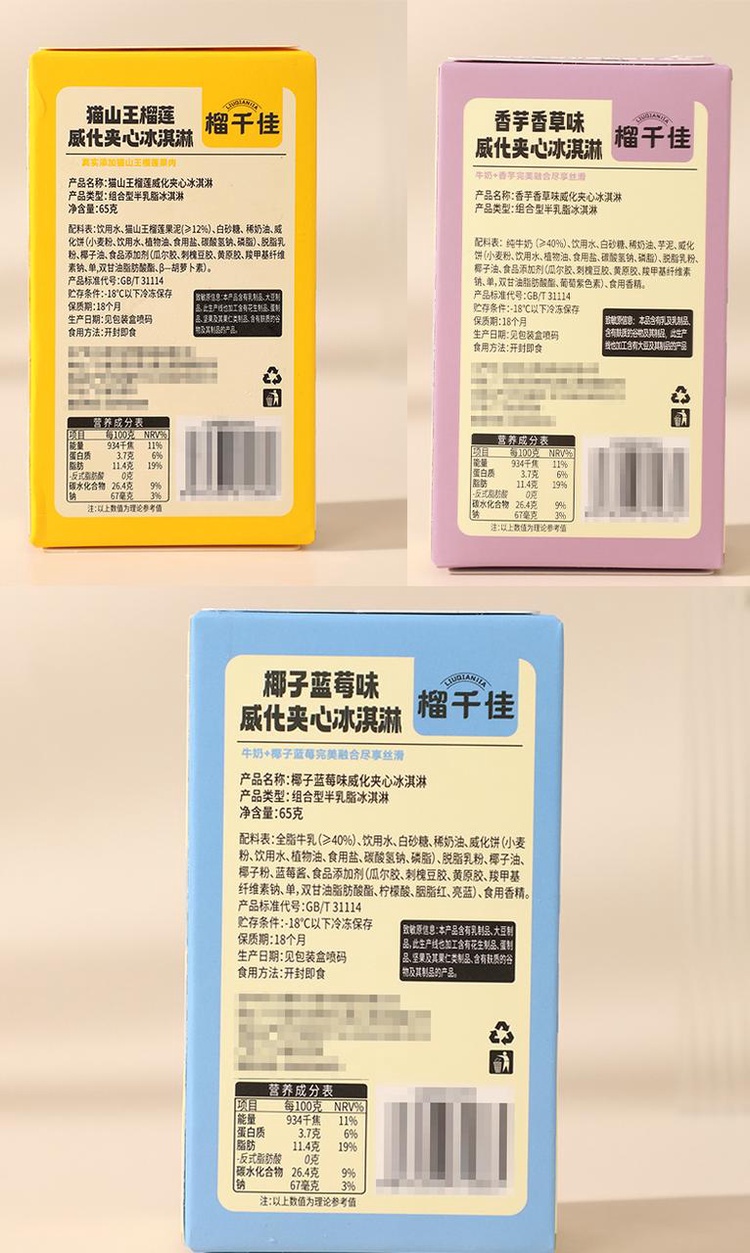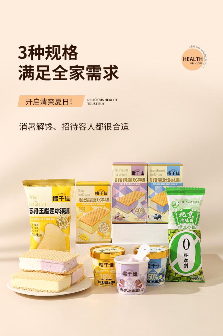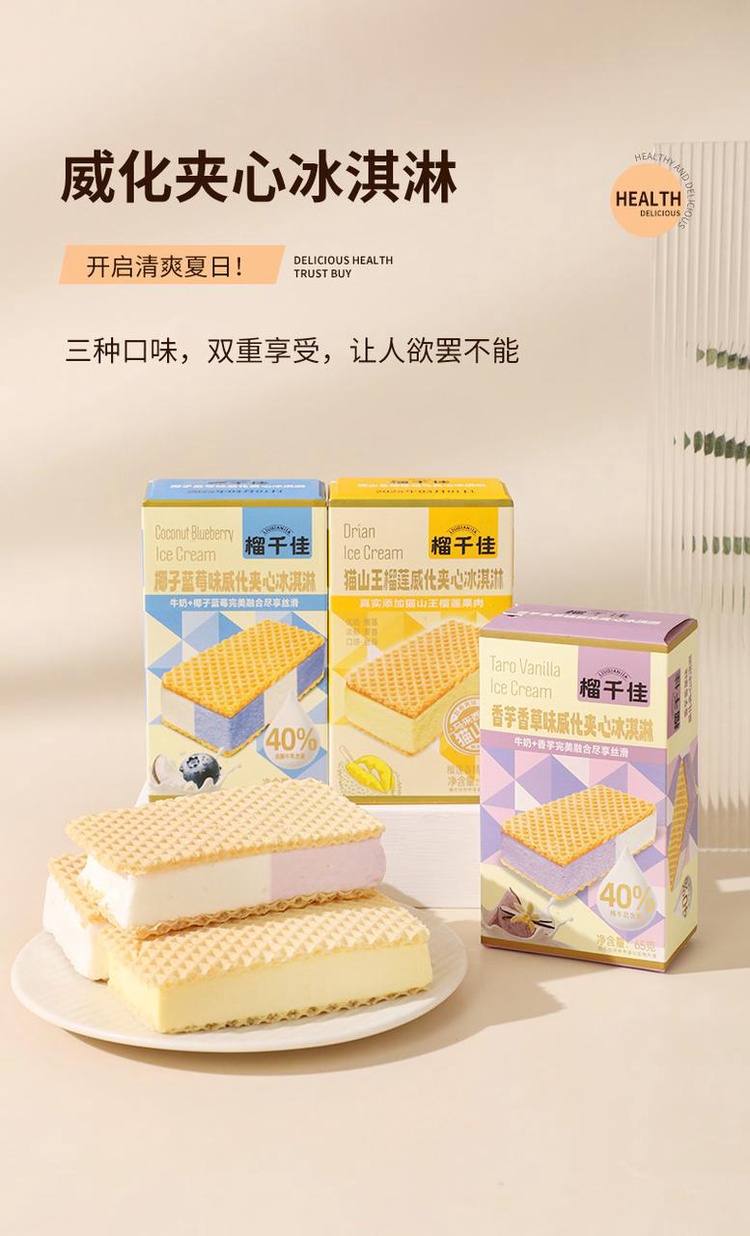 【品名】「超值榴莲冰淇淋组合」榴千佳 榴莲家族冰淇淋组合/香芋蓝莓三兄妹/全家福 口感丝滑 动物奶油 【规格】 榴莲家族冰淇淋组合:苏丹王榴莲棒子雪糕4支+猫山王榴莲冰淇淋杯3杯+猫山王榴莲威化夹心冰淇淋3盒+赠3支绿豆冰棍(共13支) 榴莲香芋蓝莓三兄妹冰淇淋组合:苏丹王榴莲棒子雪糕3支+猫山王榴莲冰淇淋杯2杯+猫山王榴莲威化夹心冰淇淋2盒+香芋香草味威化夹心冰淇淋1盒+椰子蓝莓味威化夹心冰淇淋1盒+蓝莓冰淇淋杯1杯+香芋冰淇淋杯1杯+赠3支绿豆冰棍(共14支) 全家福冰淇淋组合:丹王榴莲棒子雪糕2支+猫山王榴莲冰淇淋杯1杯+猫山王榴莲威化夹心冰淇淋1盒+香芋香草味威化夹心冰淇淋2盒+椰子蓝莓味威化夹心冰淇淋2盒+蓝莓冰淇淋杯2杯+香芋冰淇淋杯2杯+赠3支绿豆冰棍(共15支) 【产地】国内 【保质期】18个月 【发货包装】独立包装 【发货地】广东、江西、浙江随机发 【发货快递】顺丰 【不发货区域】新疆、西藏、宁夏、青海、内蒙古,四川(阿坝,甘孜,凉山自治州)云南(楚雄,红河,西双版纳,德宏,怒江,迪庆自治州)甘肃(甘南、临夏自治州、张掖、酒泉、陇南、武威、金昌、嘉峪关市) 【发货时效】48-72小时,周末节假日顺延 【售后说明】冷冻产品不支持退换货! |