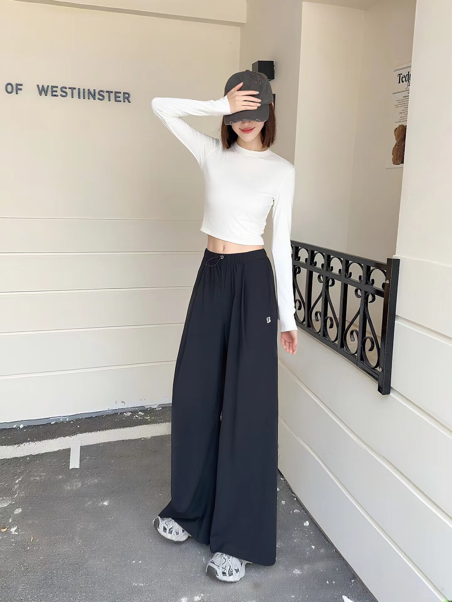 F040706春季新款健身运动休闲简约百搭宽松女士梭织阔腿裤长裤