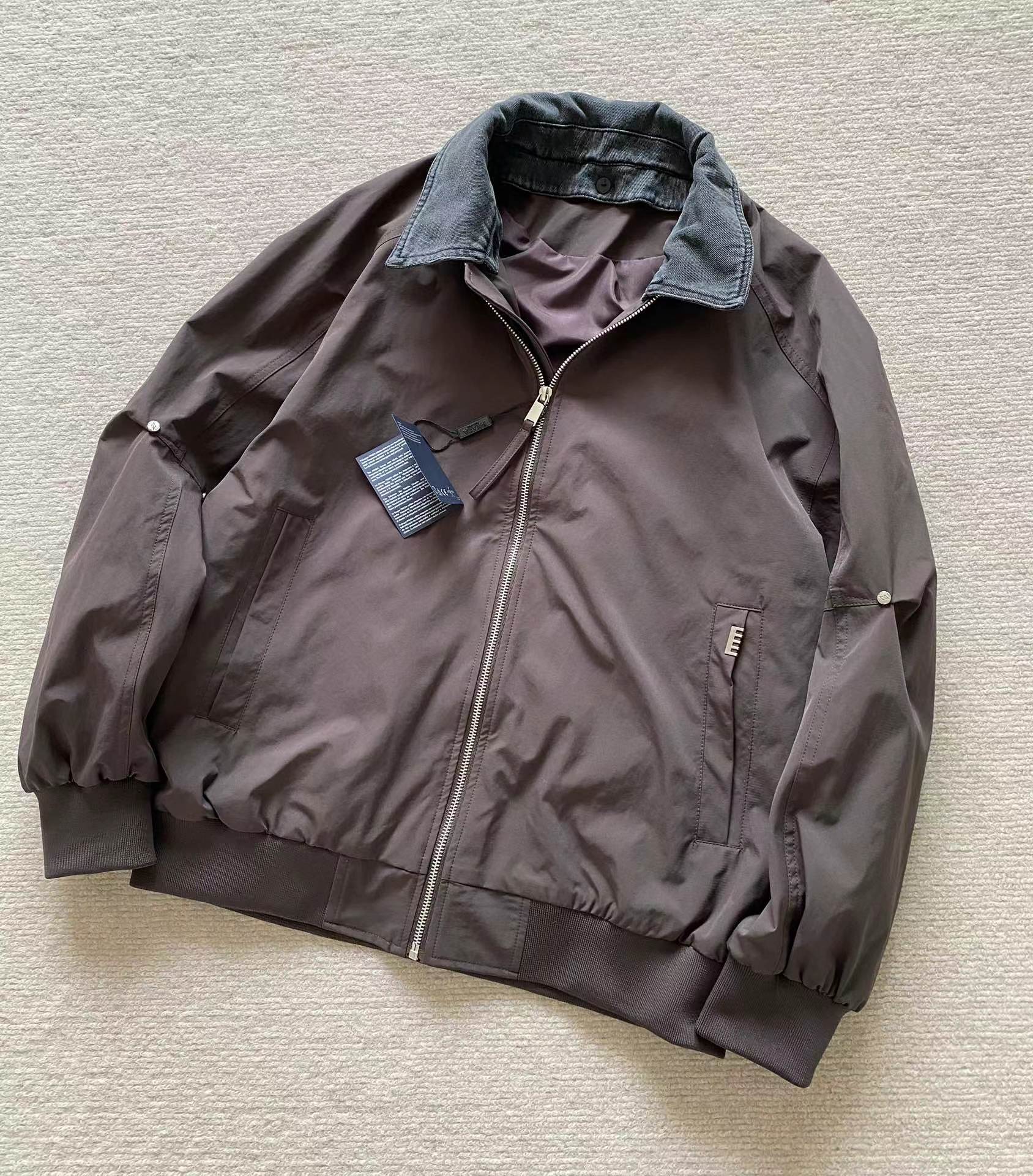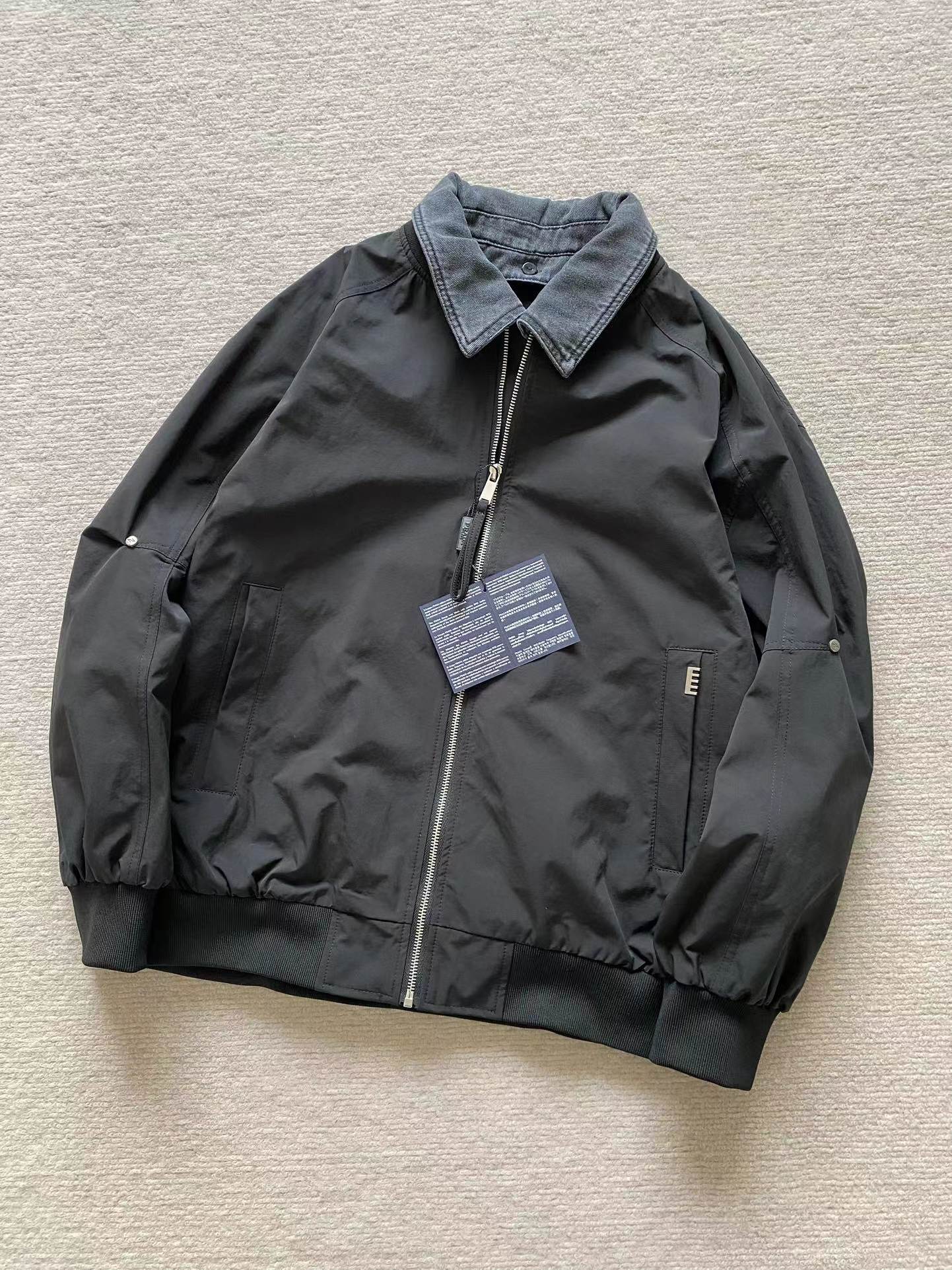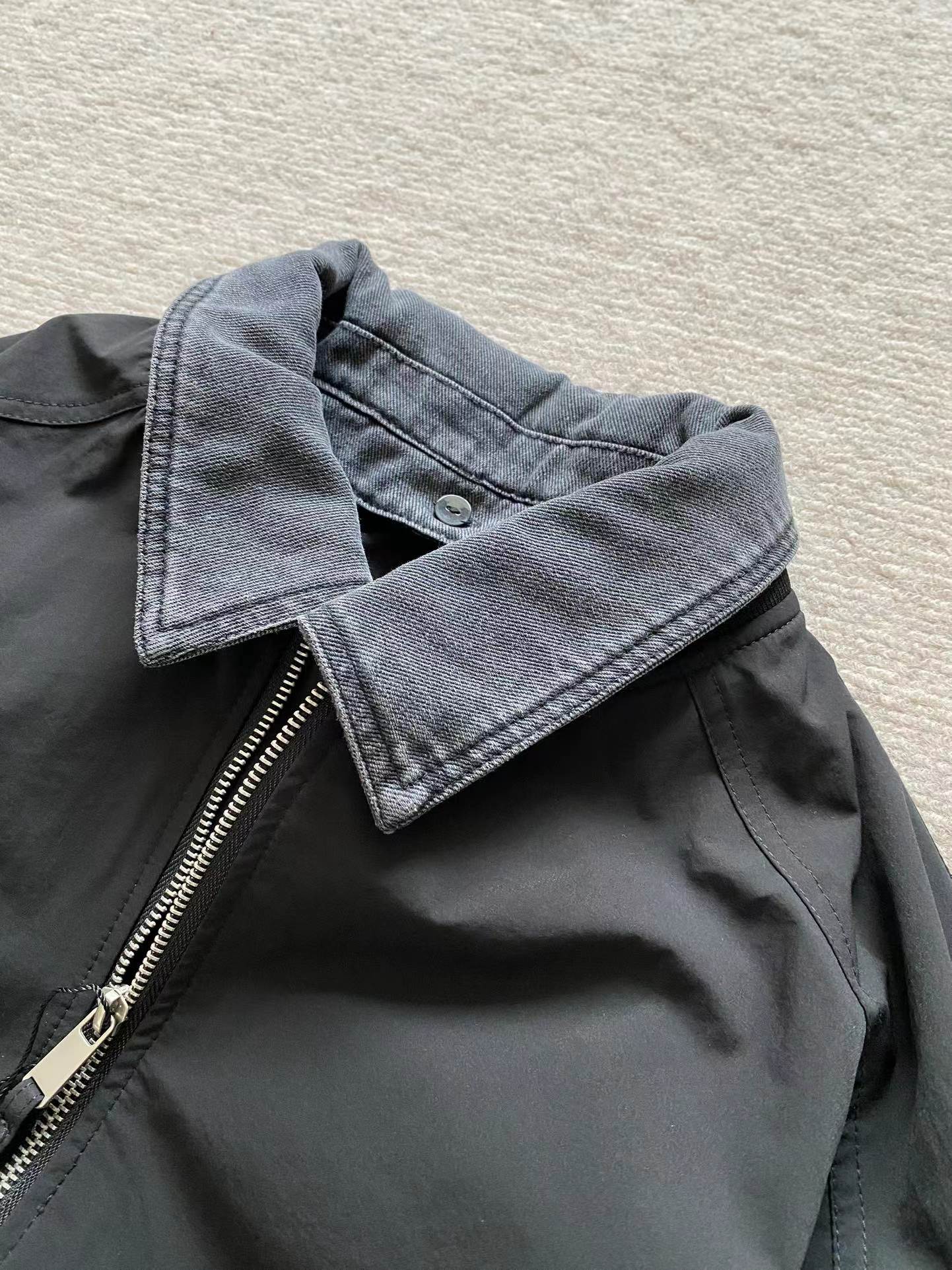 男士可拆卸翻领棒球领夹外套!jing典时尚款,客供高密双纱定织面料,内里内衬,舒适耐穿!可拆卸牛仔翻领设计,一衣两穿,后领倒三角布标点缀,做工走线整齐密集,上身效果一级棒,喜欢的兄弟不要错过!
