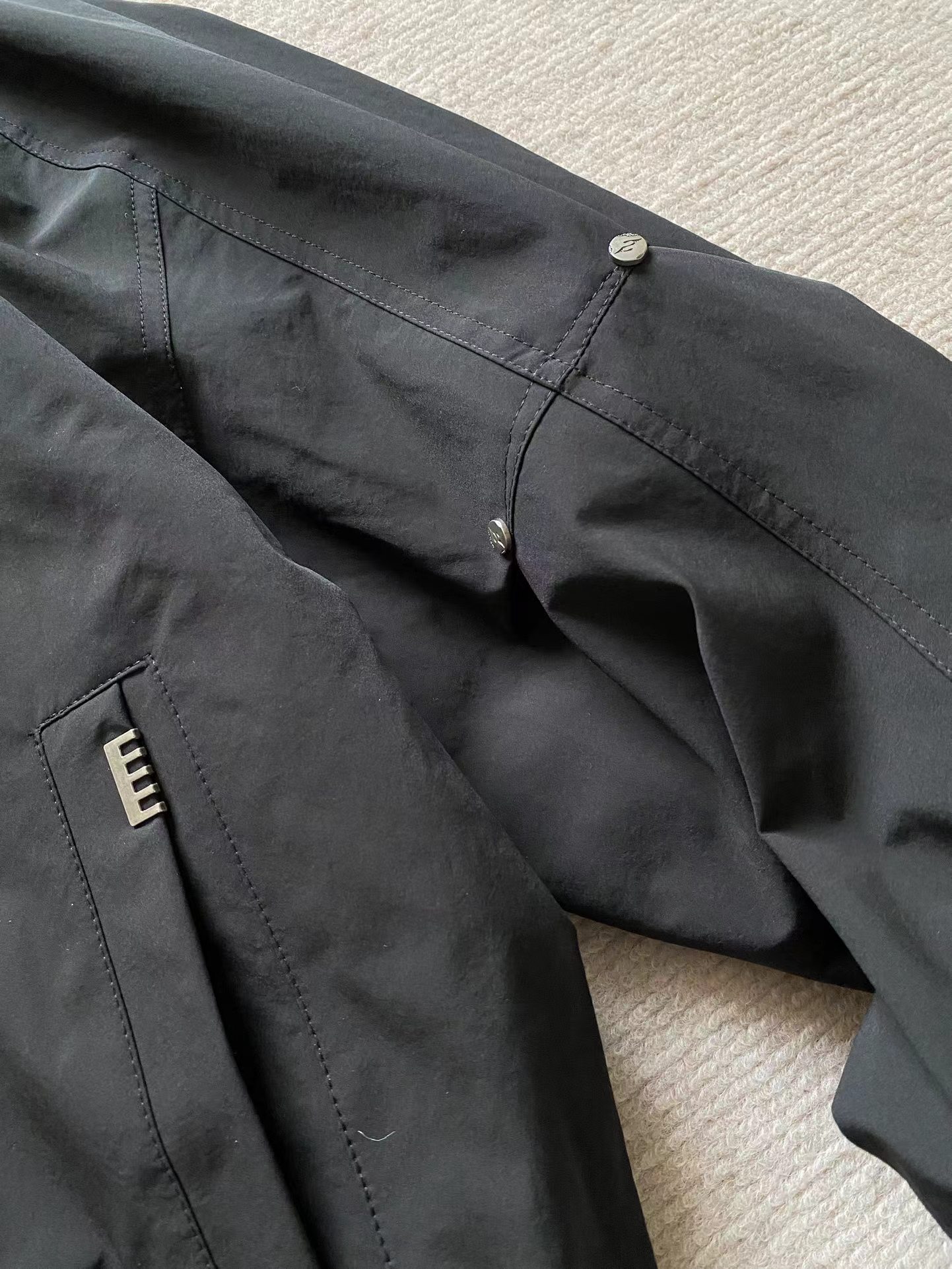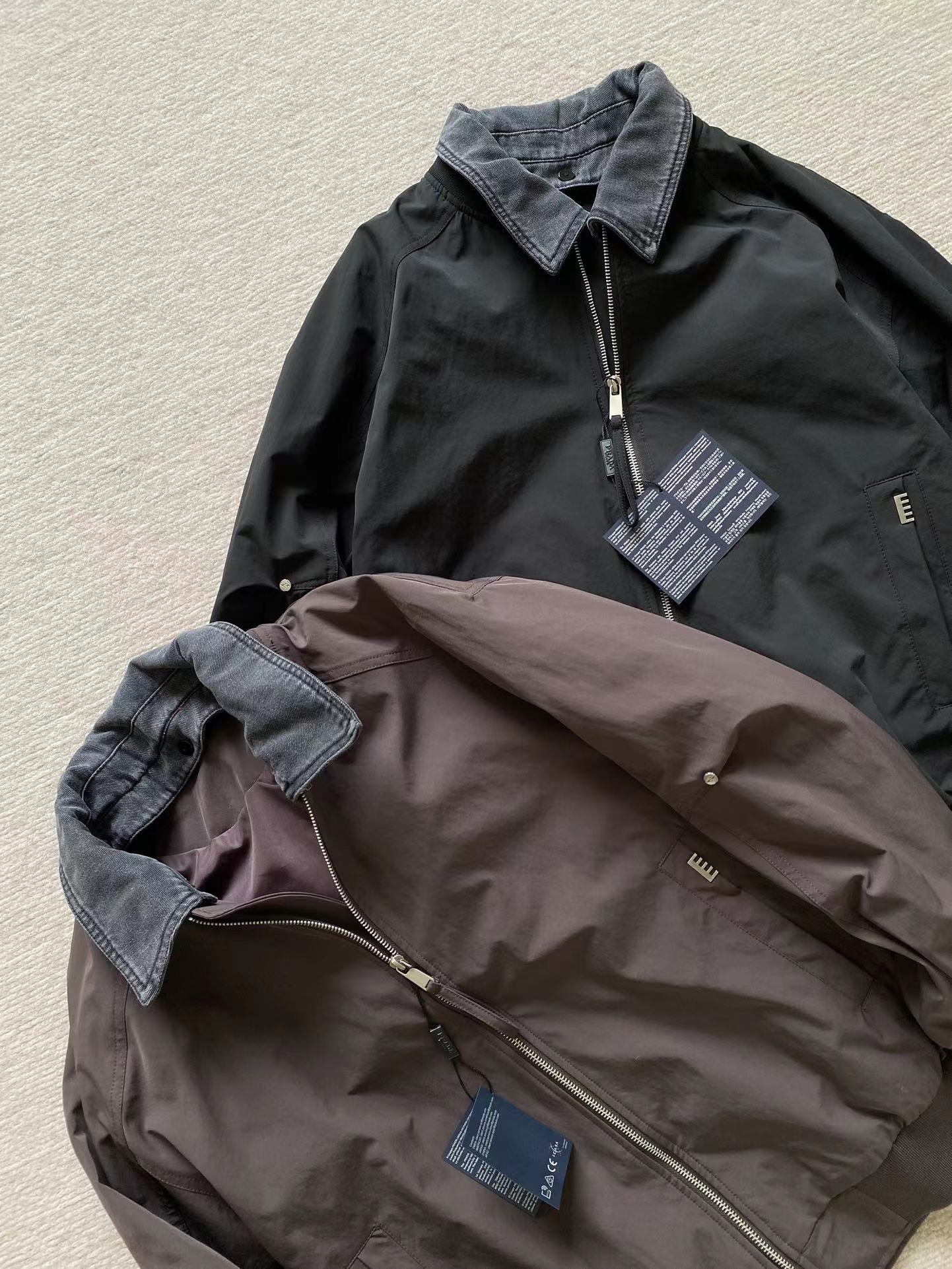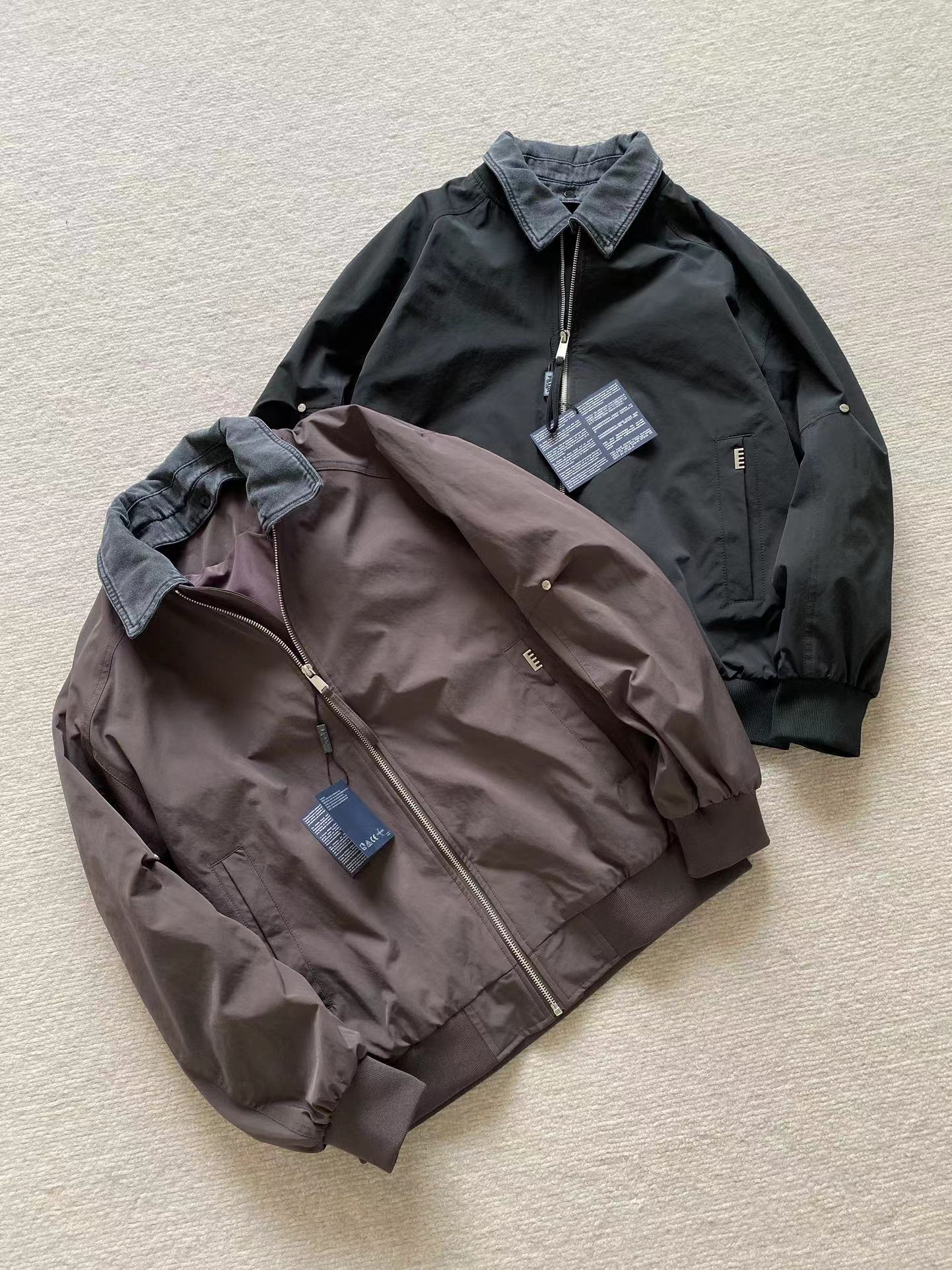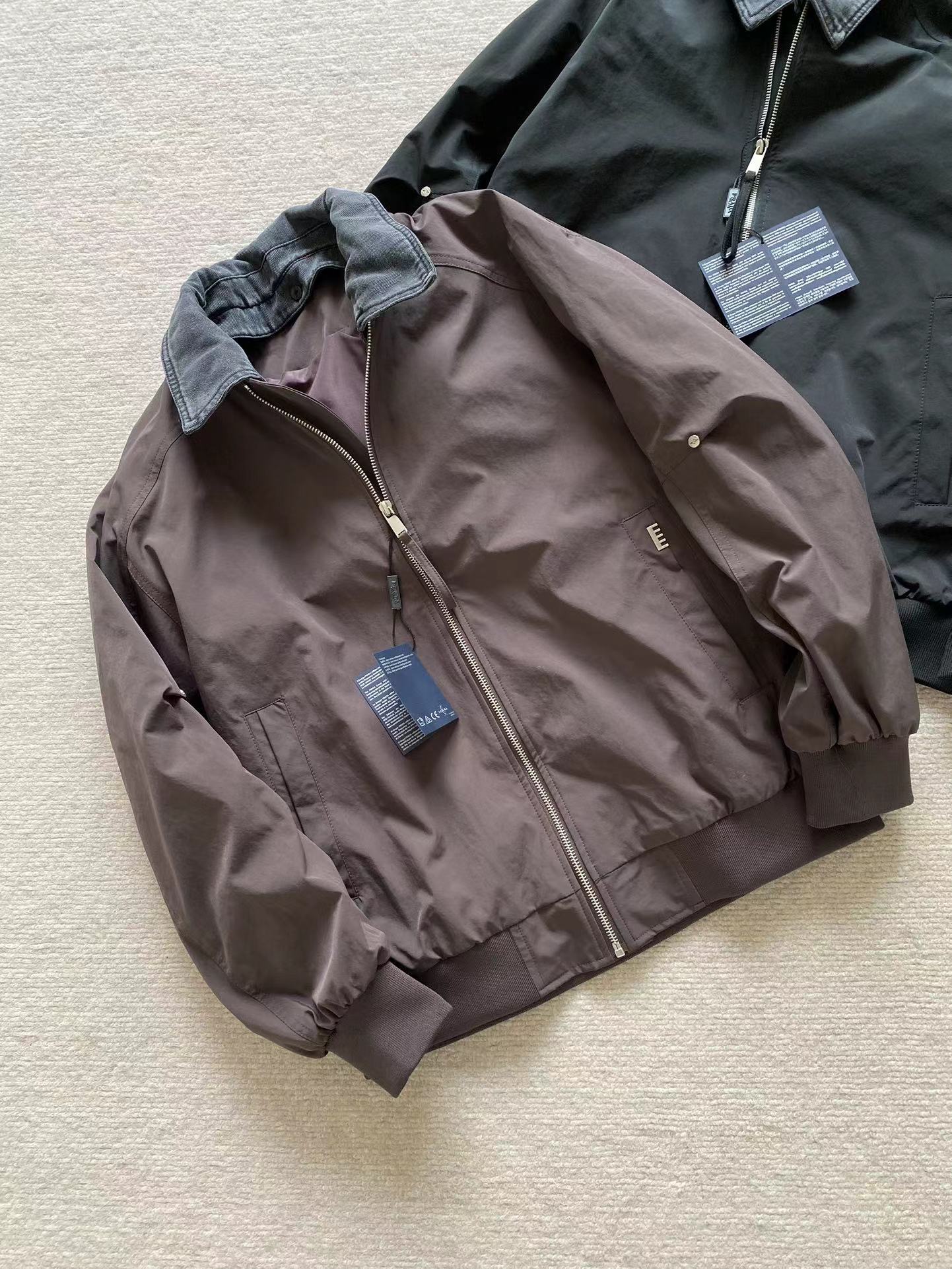 男士可拆卸翻领棒球领夹外套!jing典时尚款,客供高密双纱定织面料,内里内衬,舒适耐穿!可拆卸牛仔翻领设计,一衣两穿,后领倒三角布标点缀,做工走线整齐密集,上身效果一级棒,喜欢的兄弟不要错过!