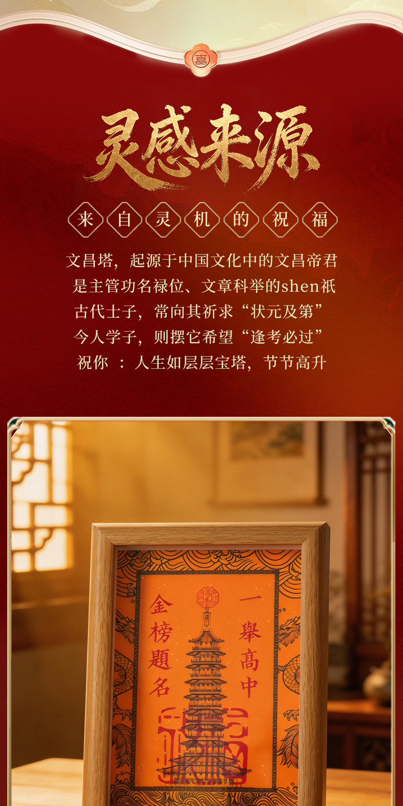 【祈愿吉品】一举高中文昌塔相框励志摆件中高高考学生