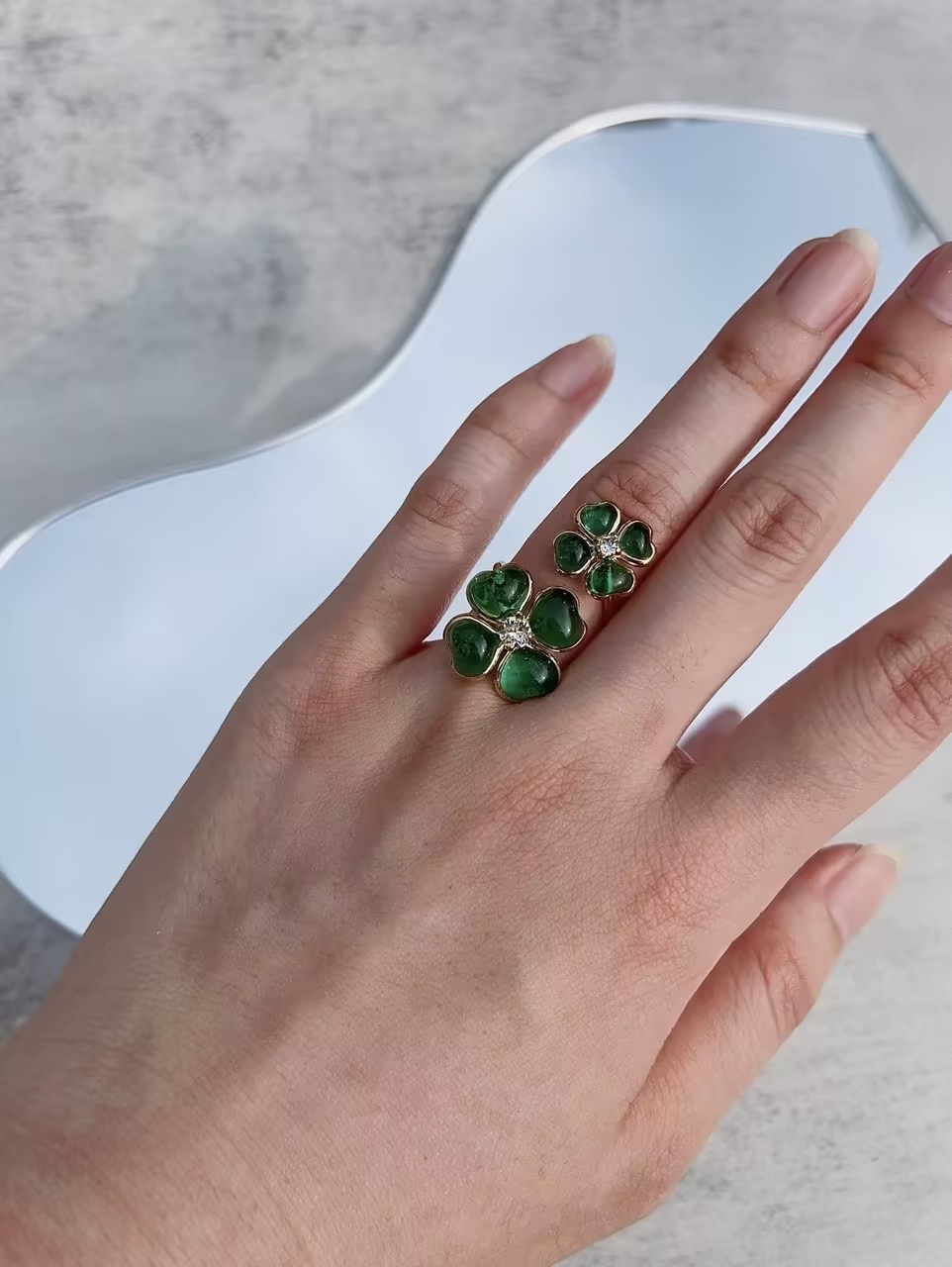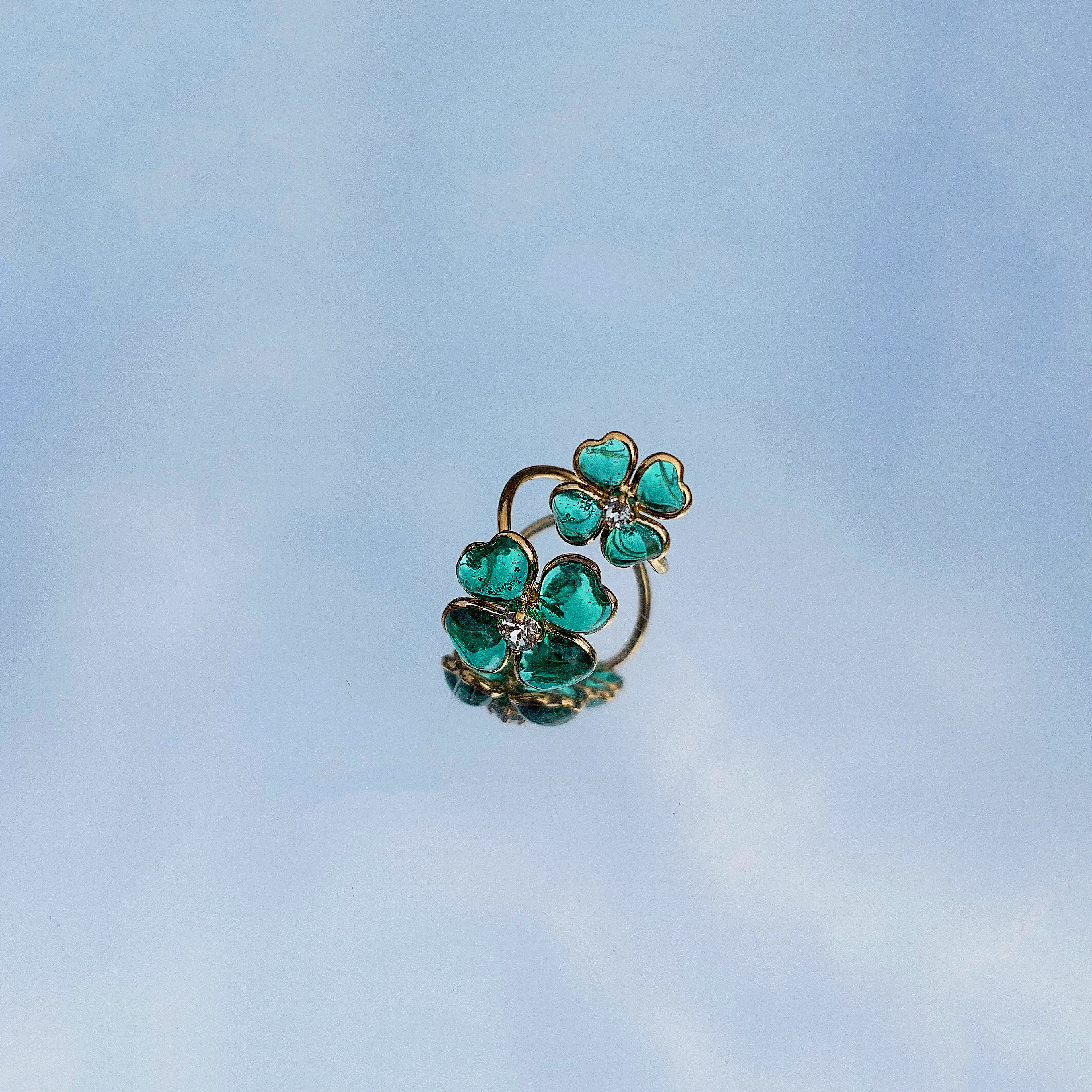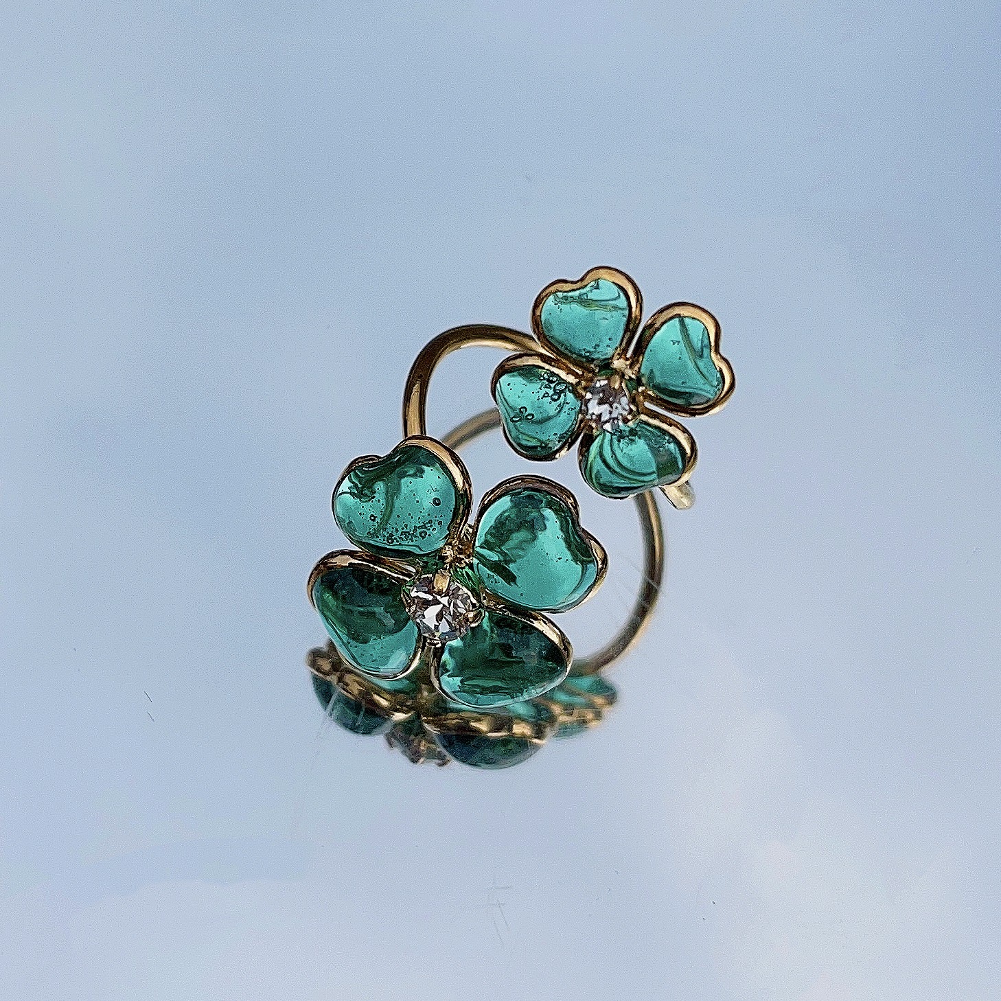 北京仓|Gripoix Paris-Double Clover-草绿色 四叶草 琉璃 戒指[法国设计师]