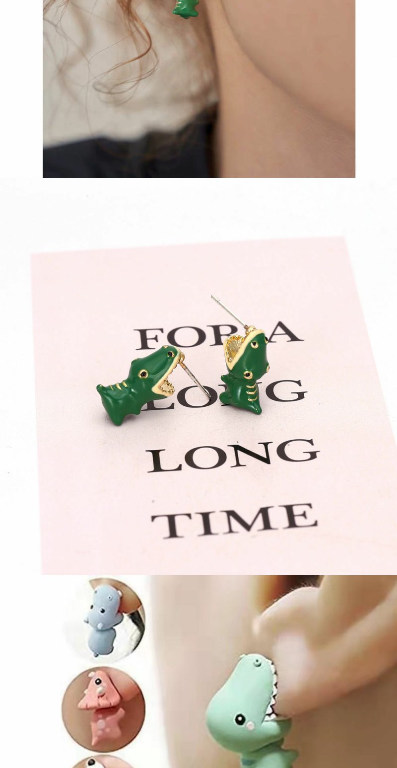 原创银针卡通动物个性张嘴咬耳朵小恐龙鳄鱼耳钉可爱搞怪耳环女