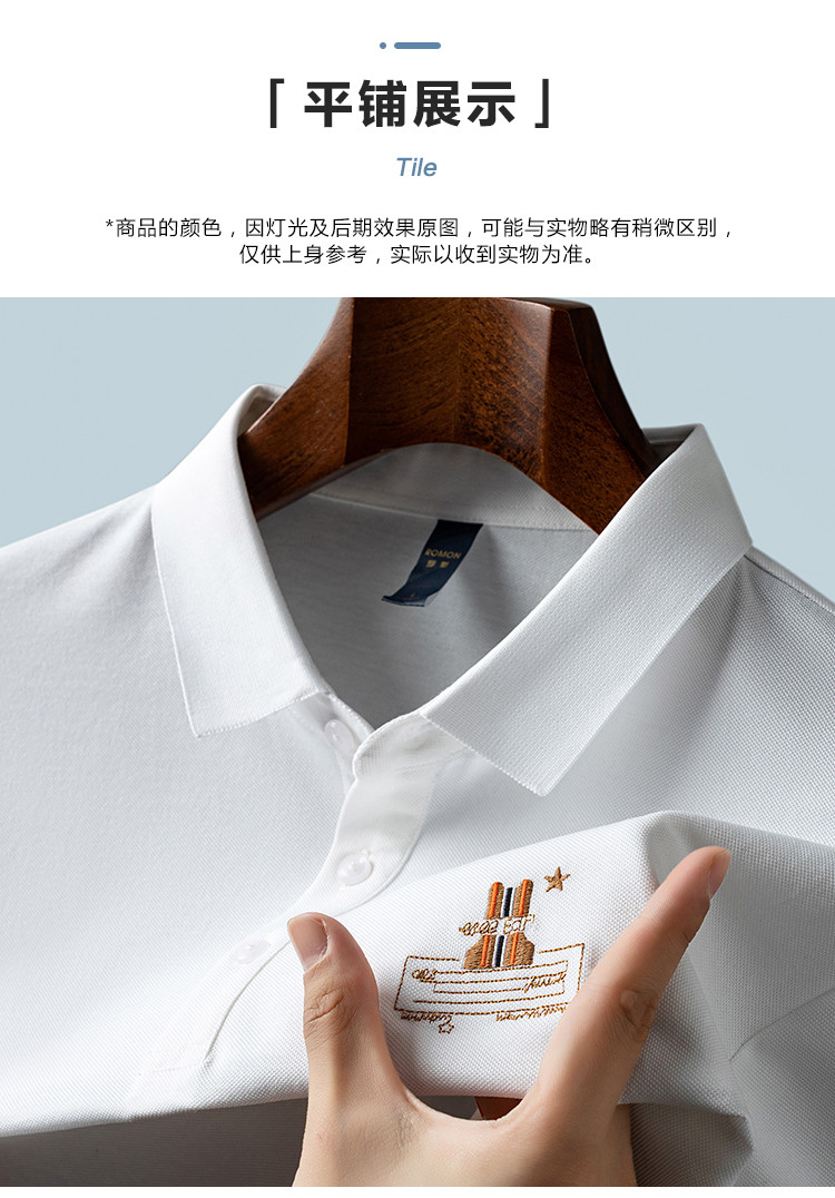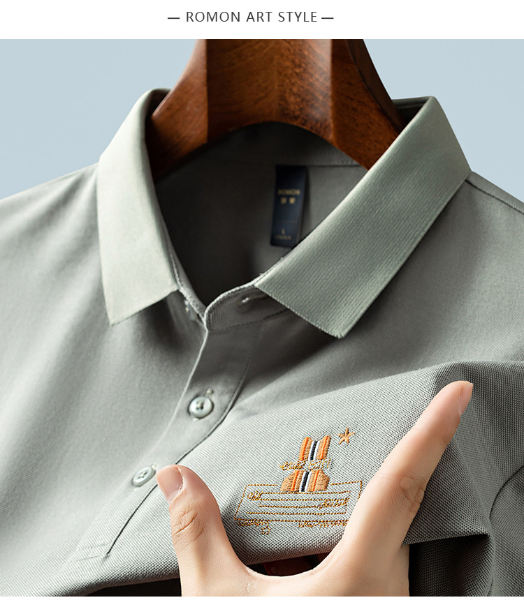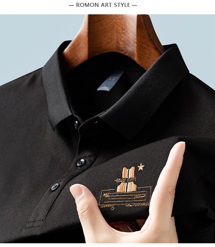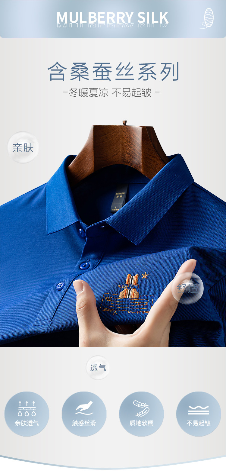 【含桑蚕丝】罗蒙夏季男士休闲商务polo衫男短袖男夏季薄款绣花冰丝t恤男短袖
