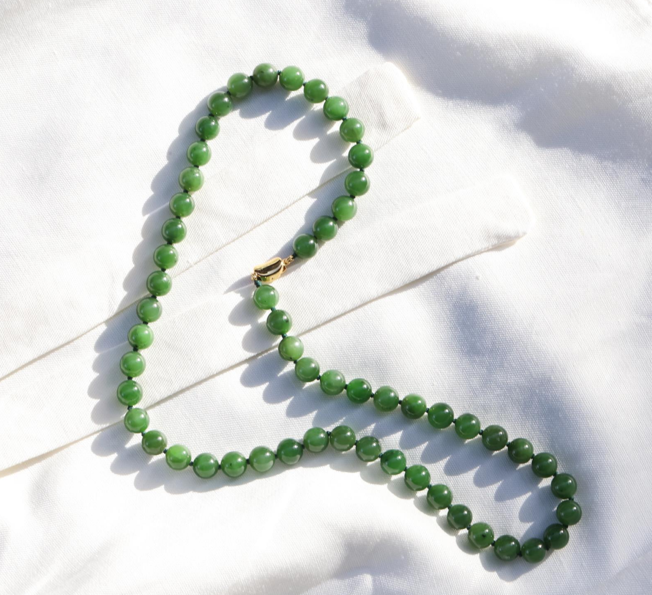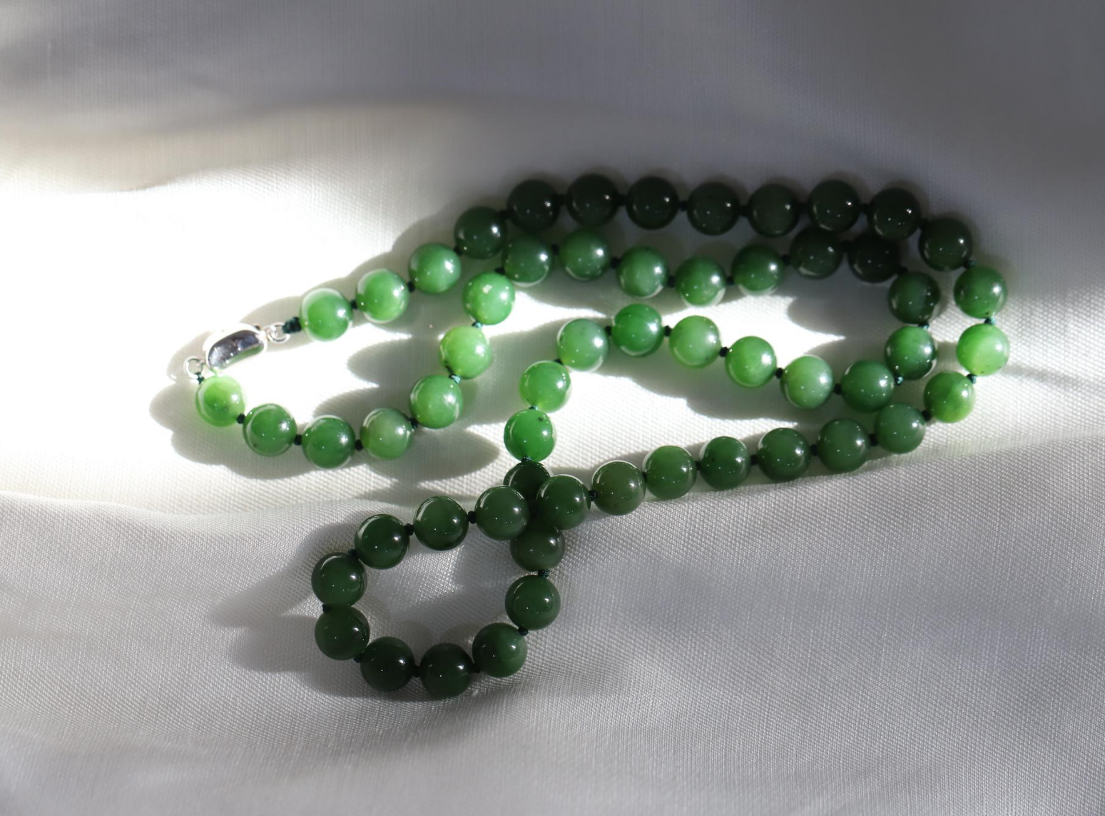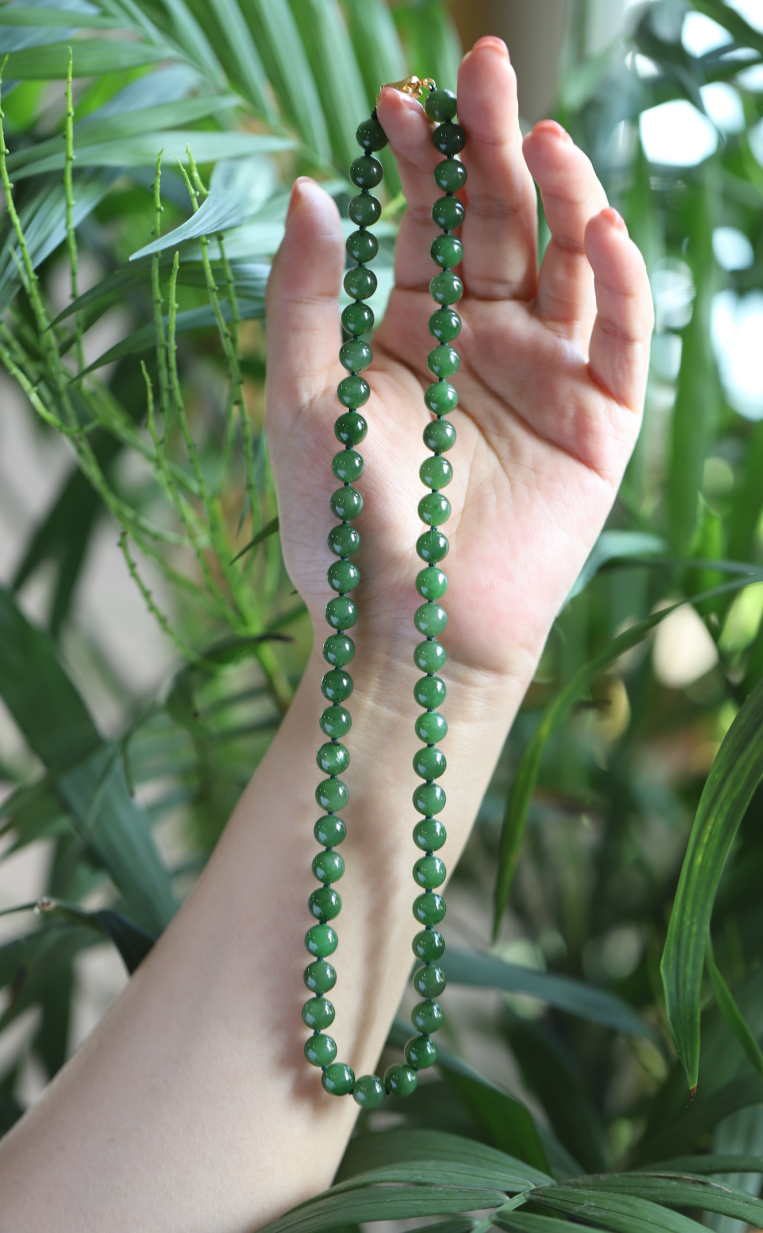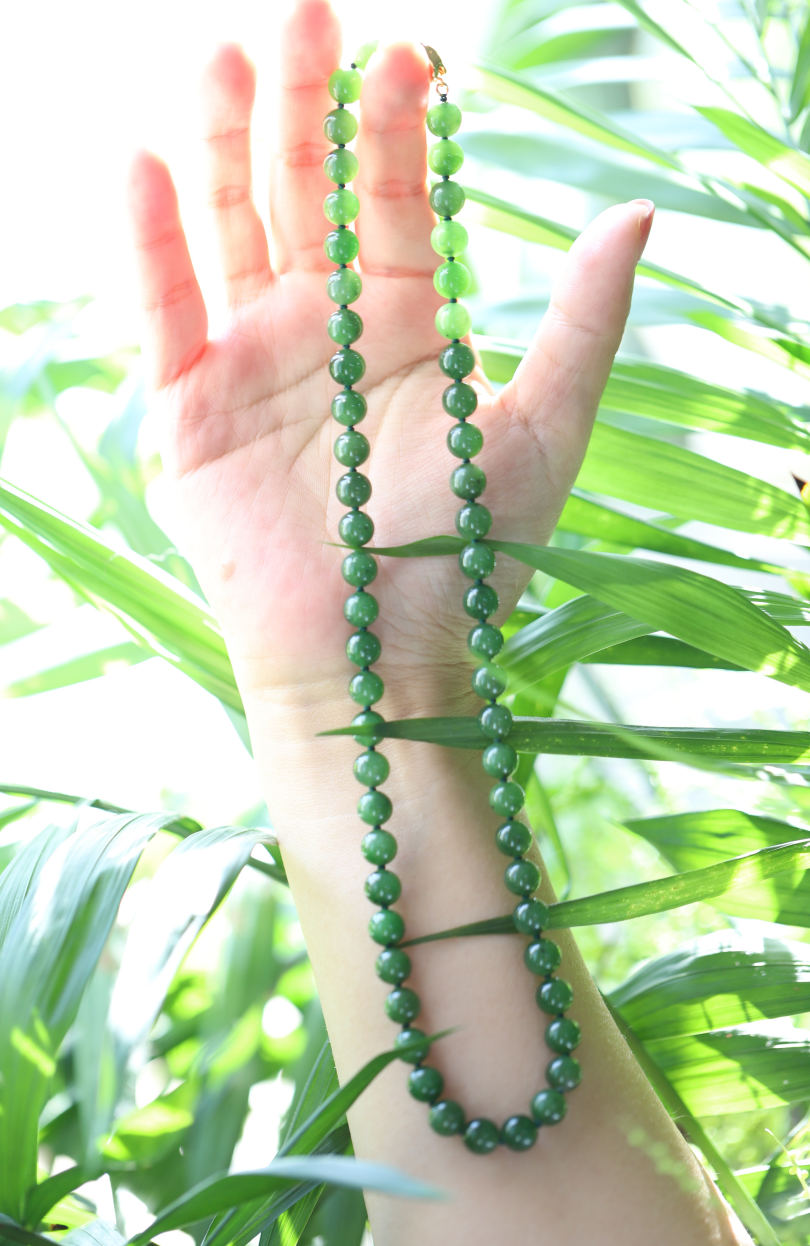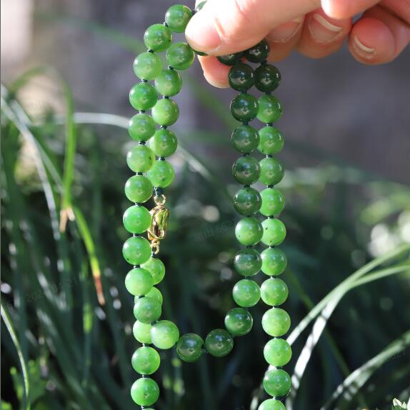 冬葵设计编制 送给自己和母亲的礼物 天然和田碧玉颈链 8mm 长约48CM