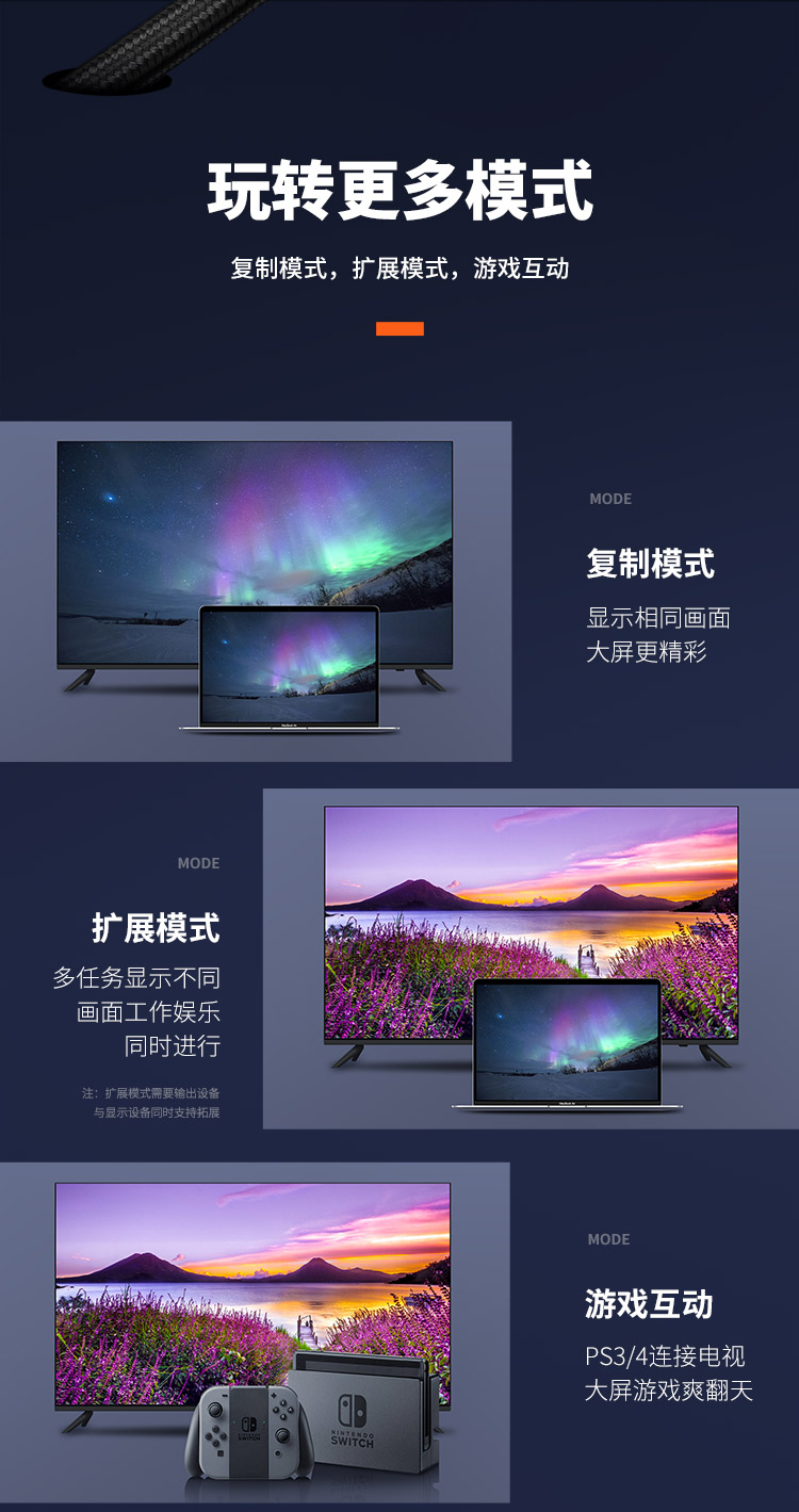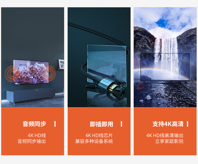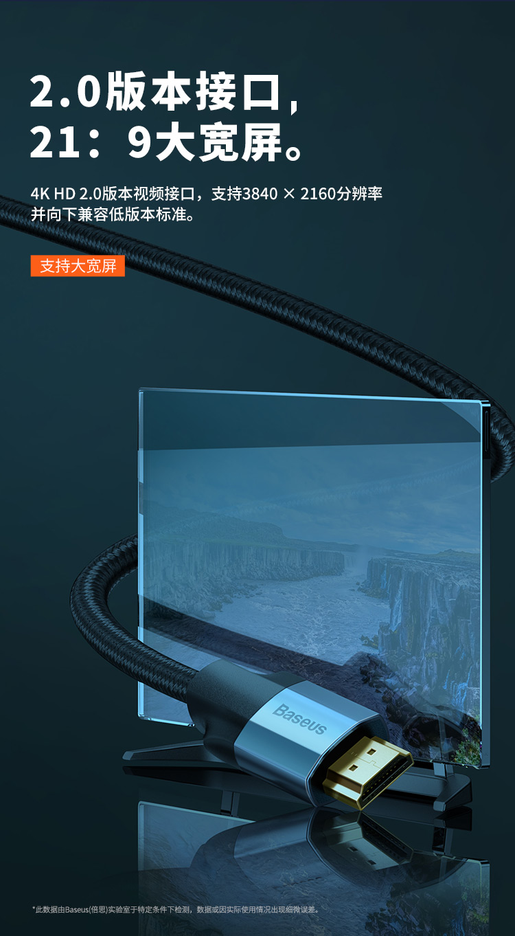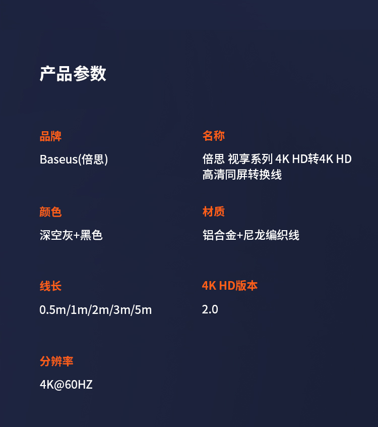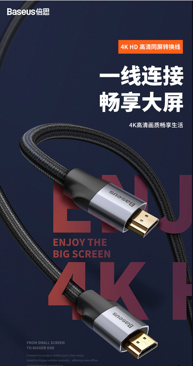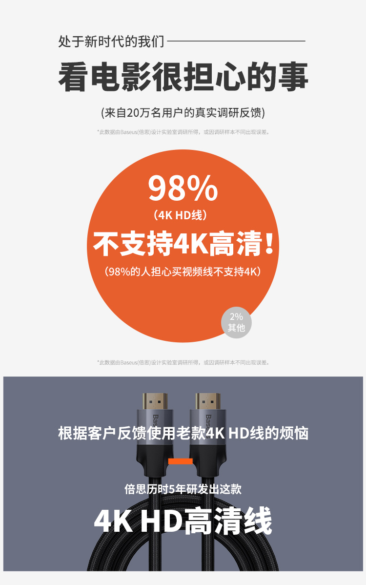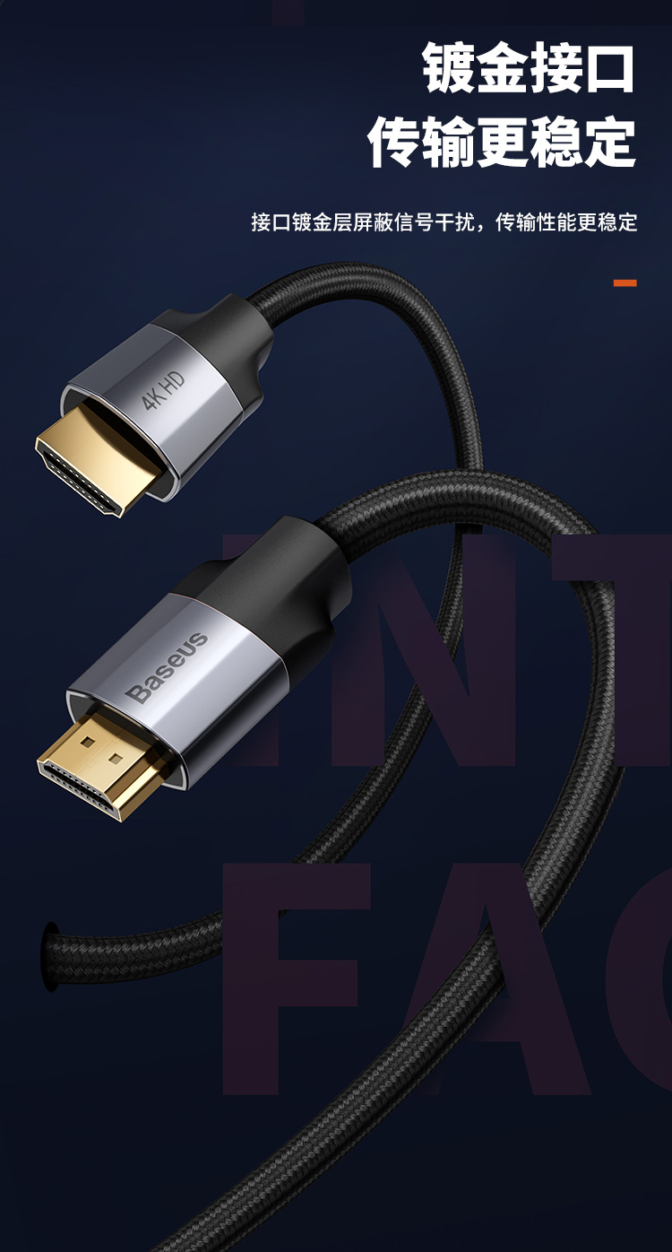 倍思 视享系列 4KHD转4KHD 高清同屏转换线 深空灰壳+黑色线
