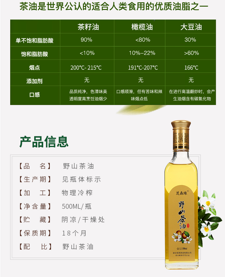 【恩施】茂森源正宗野生茶油山茶油礼盒装 500ml*2瓶