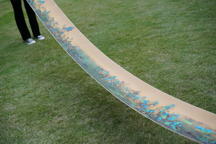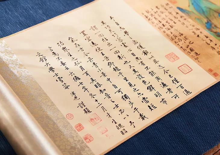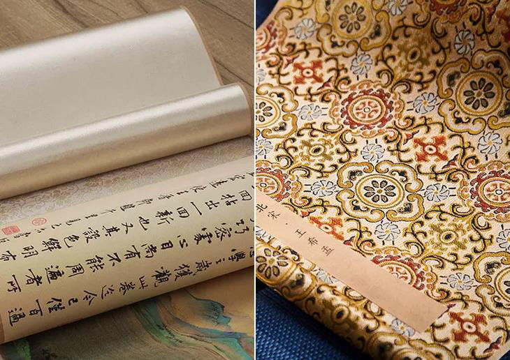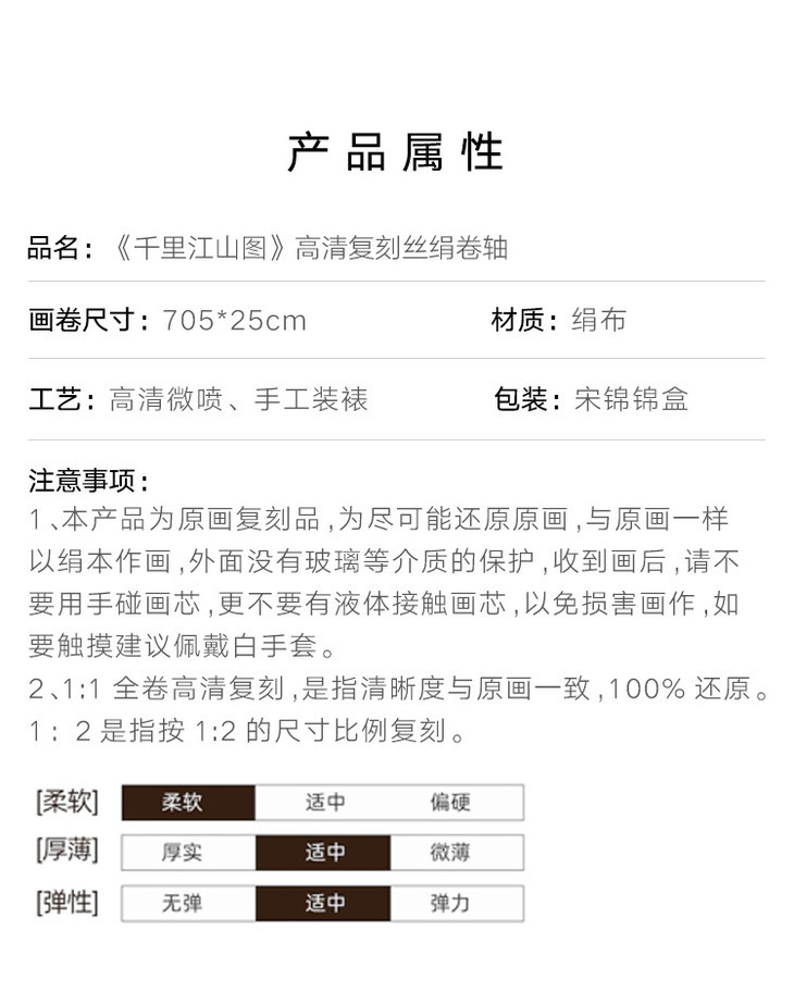 与原作一样,复刻专家组采用绢丝材质,丝滑质厚,多次展开卷起也不起褶皱,连卷轴的材质都能做到完美复刻。