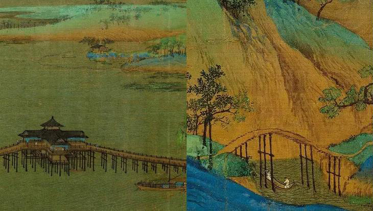 它不仅是青绿山水画的代表作,更是一版宋朝的“航拍中国”,画卷本身,就是一曲壮丽辉煌的长歌,是地地道道的国宝级画卷,也是故宫博物院”镇院之宝“之一。
