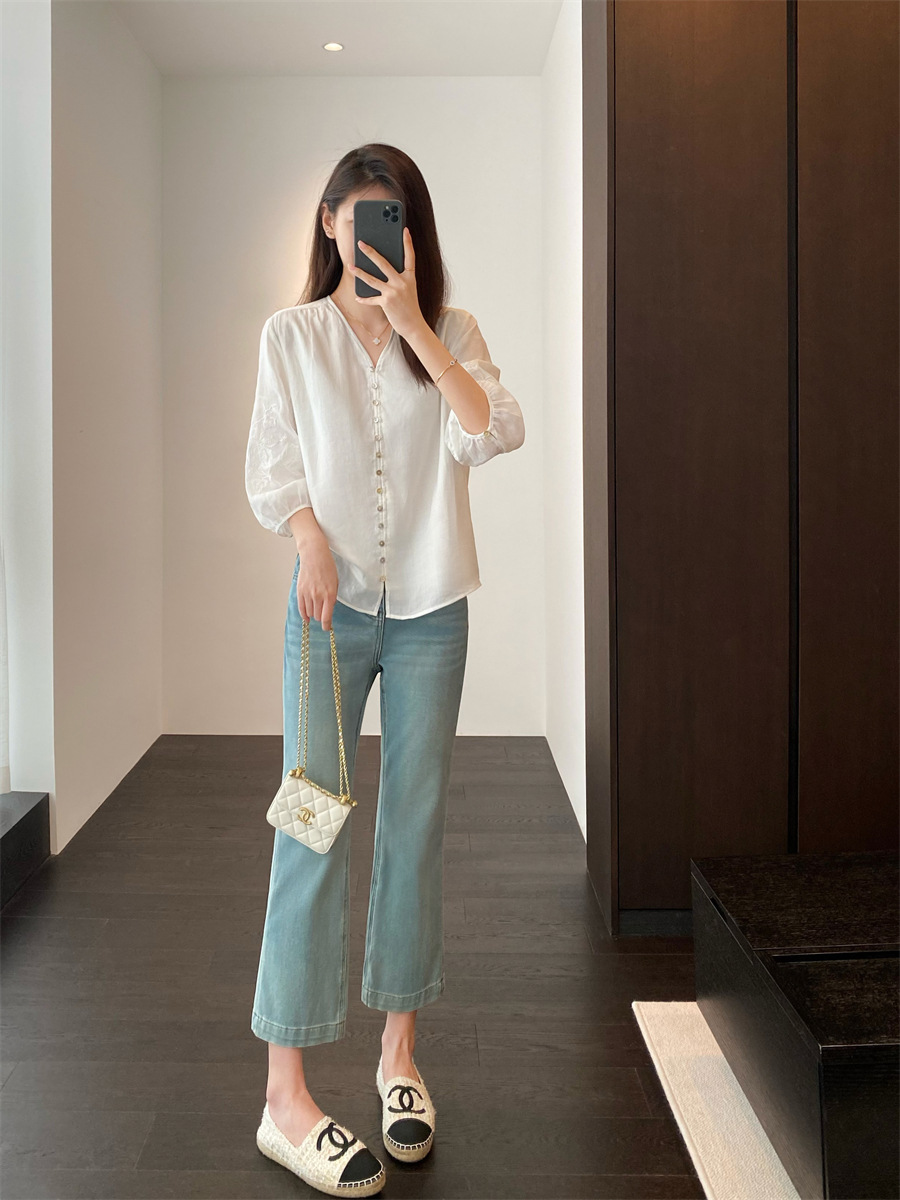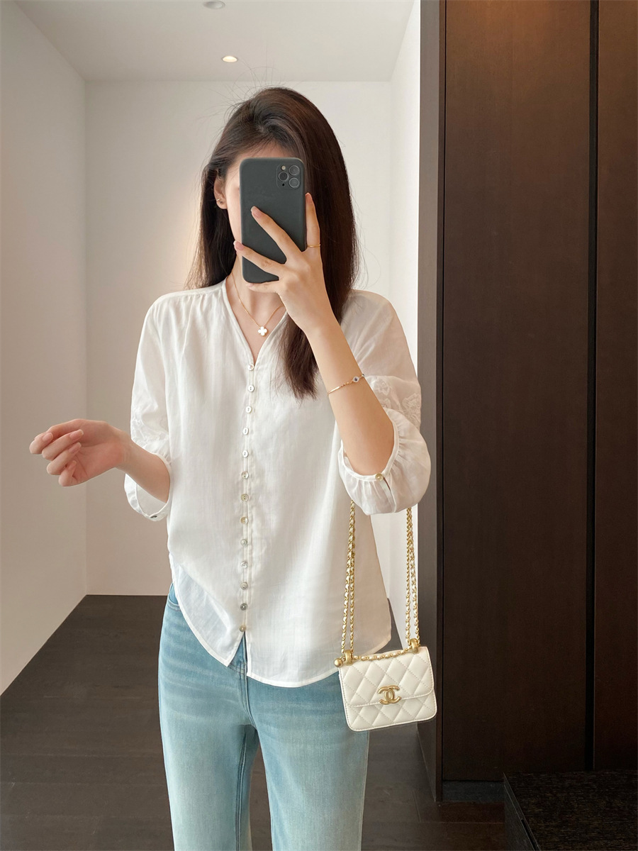 将东方的典雅韵味与现代时尚完美融合~经典的V领衬衫版型,却有着别具一格的细节