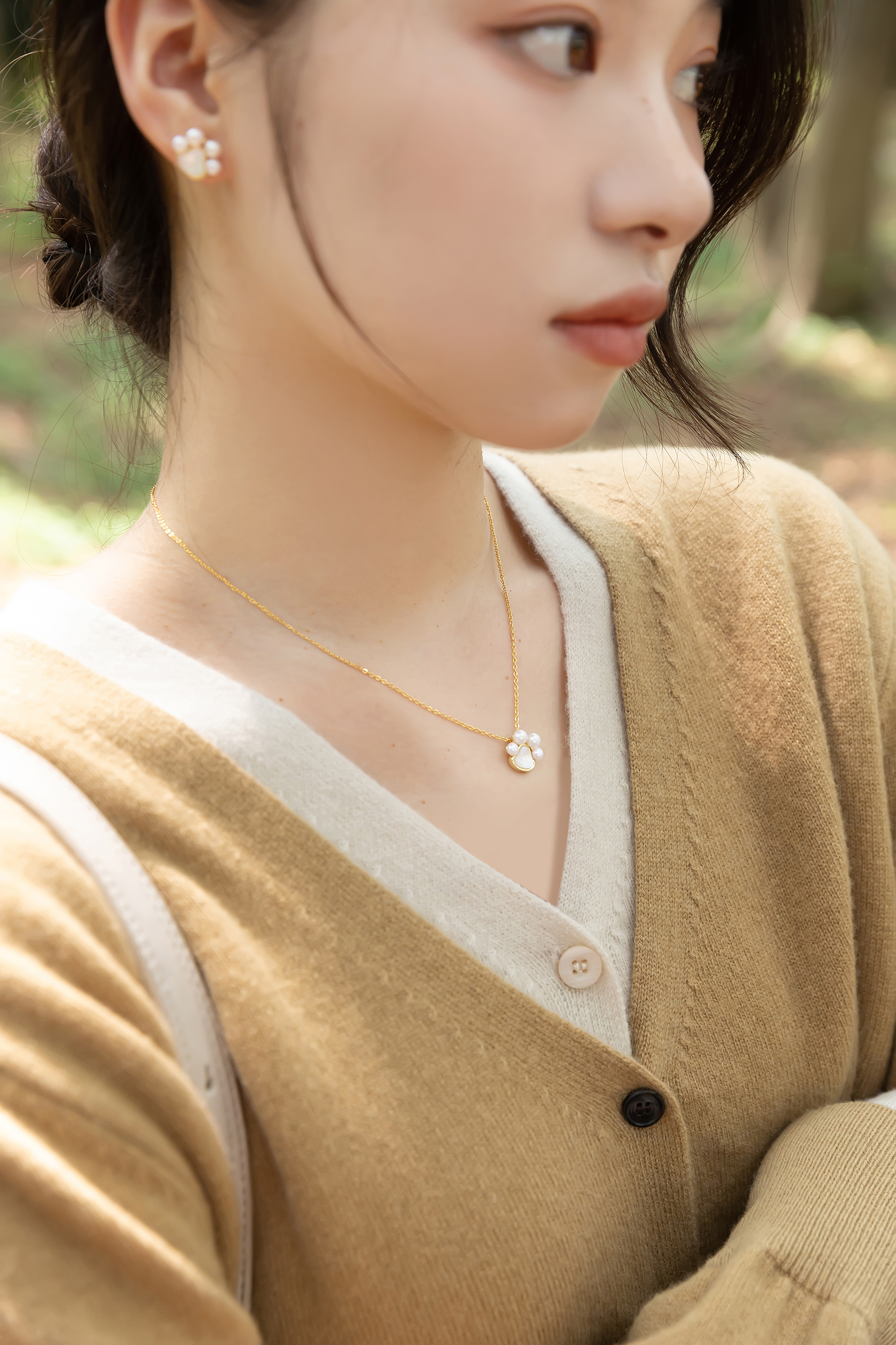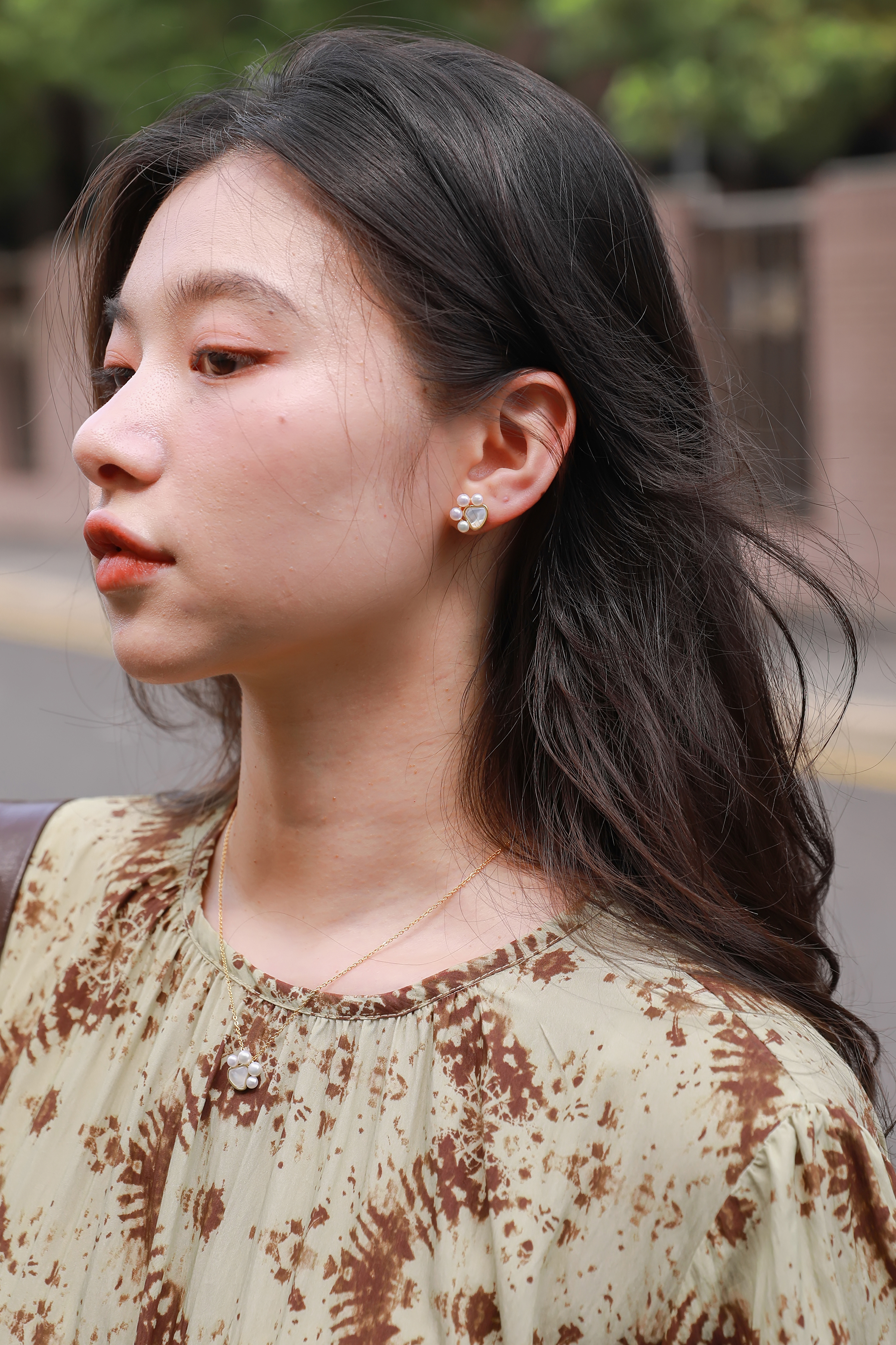 由14k注金(铜镀金14GF) 配件3mm-5mm天然淡水珍珠及母贝组合而成,性价比高,日常搭配很出彩!