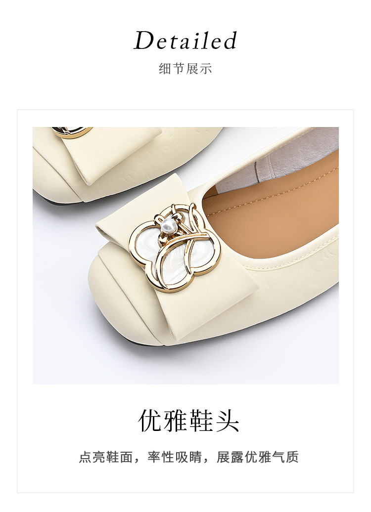 经典鲨2024年秋季新品时尚简约减龄蝴蝶结一脚蹬平底单鞋女KG25-D37171