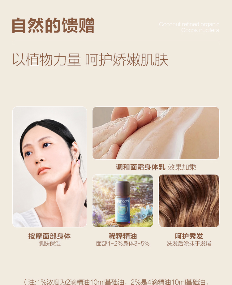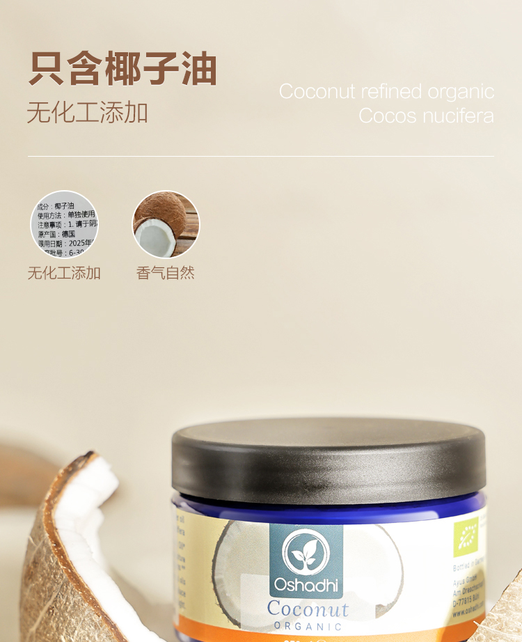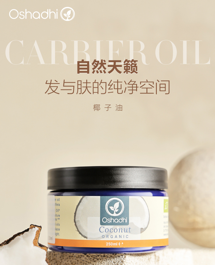 oshadhi德国O家椰子油 头发用油 晒后呵护滋润肌肤 稀释精油