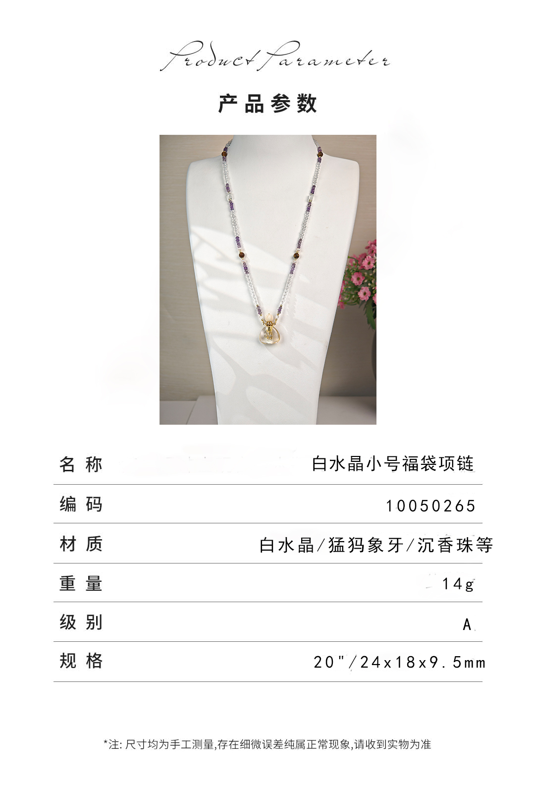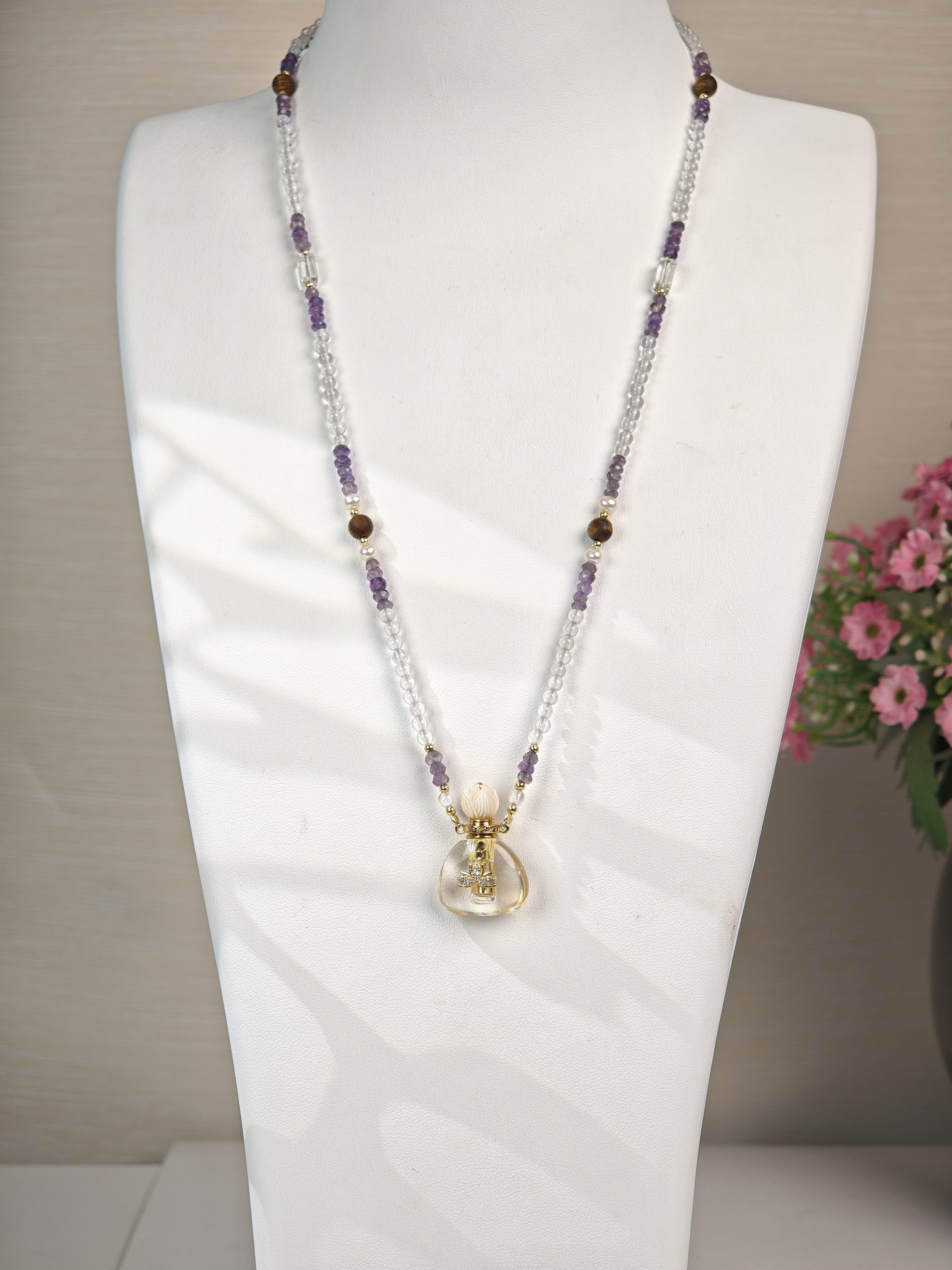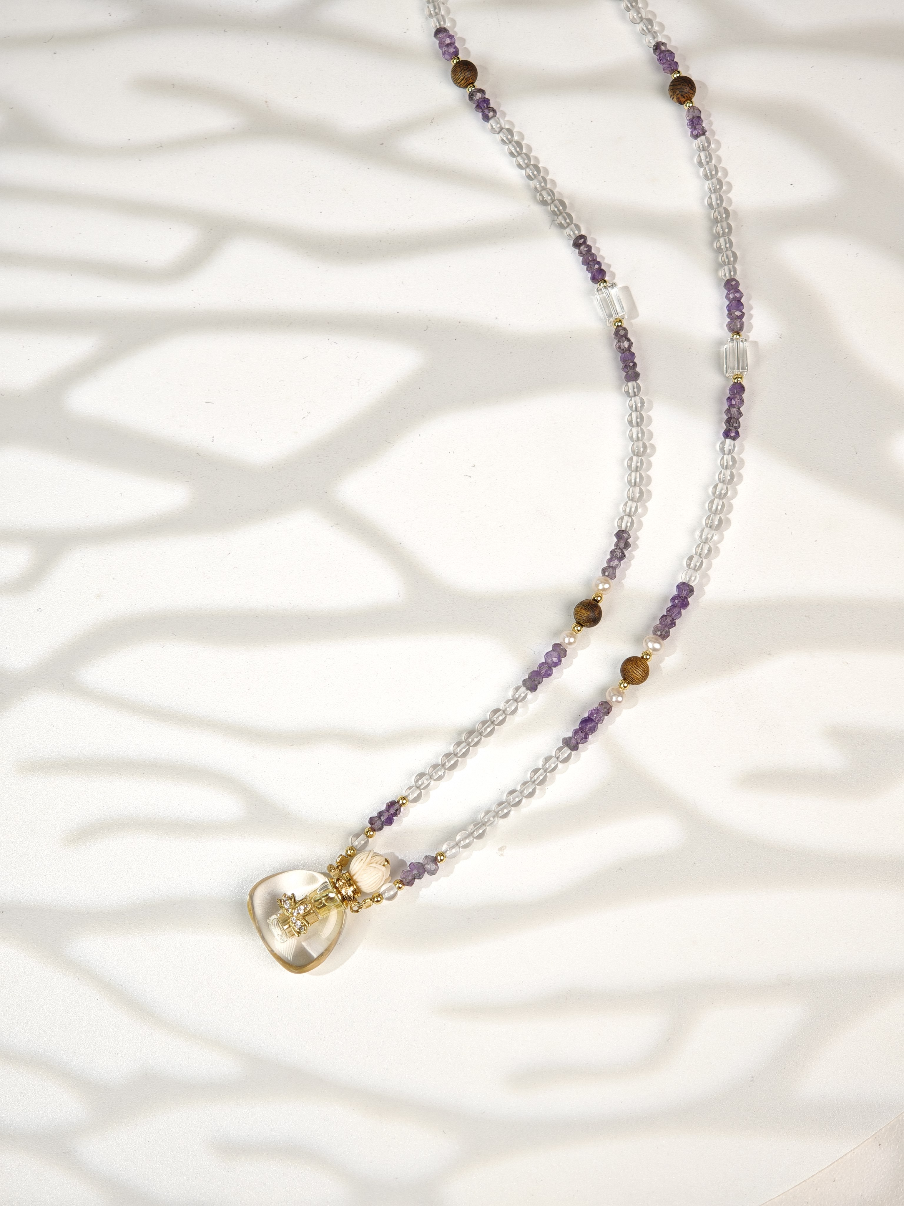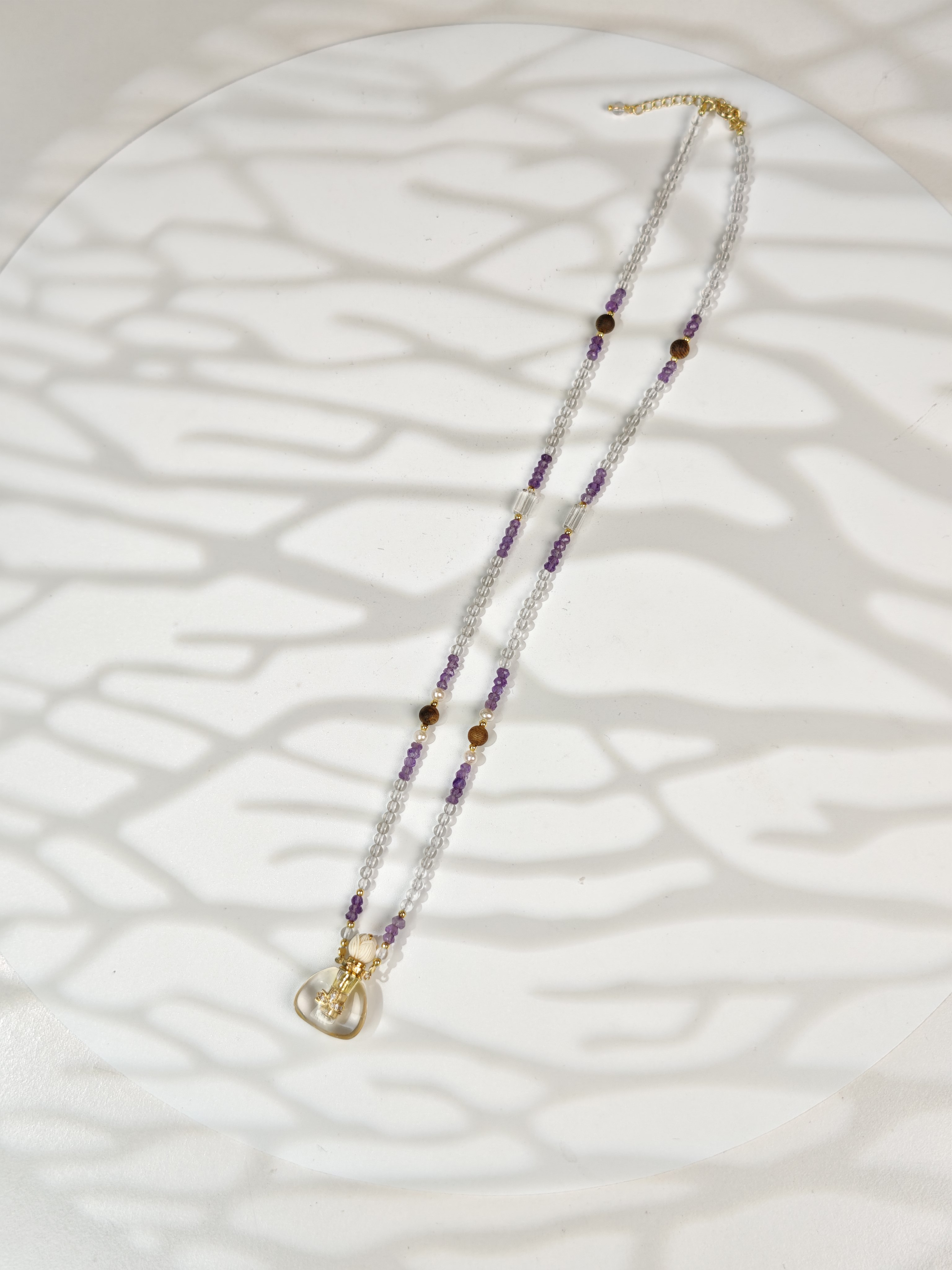MELI&MOLI| 白水晶小号福袋镶莲花吊坠沉香珠点缀珠串项链