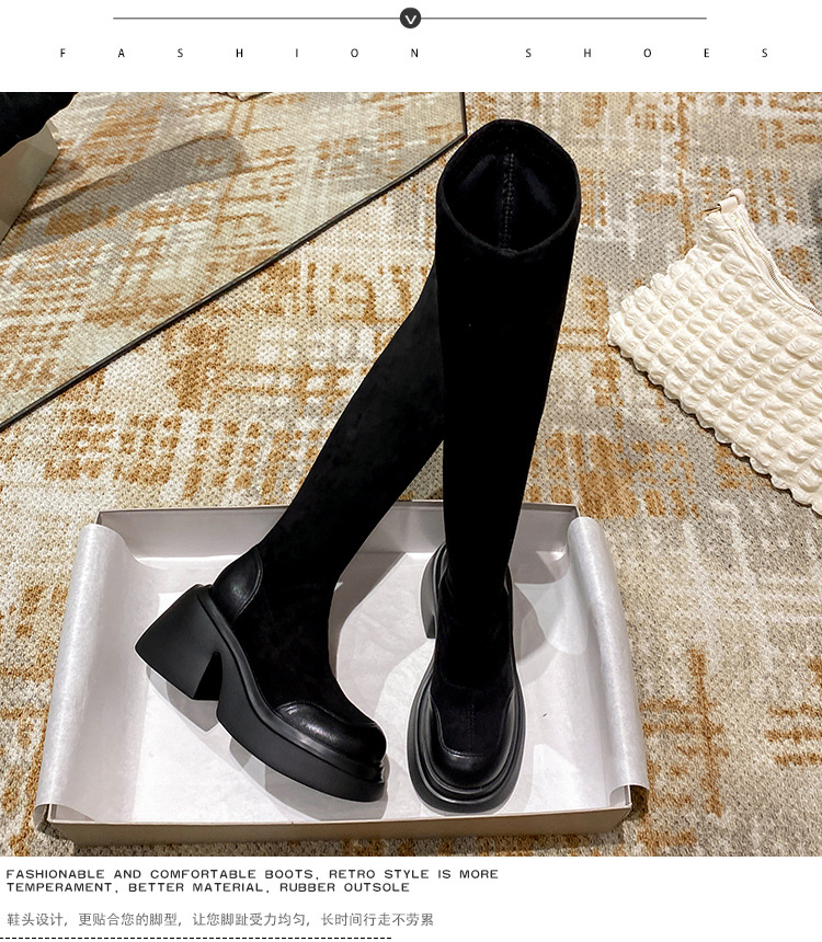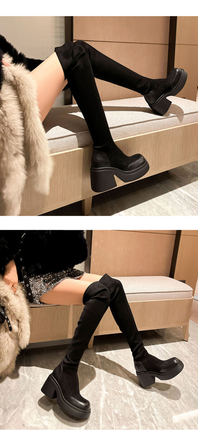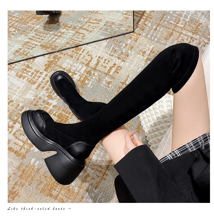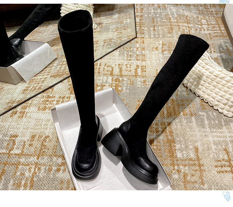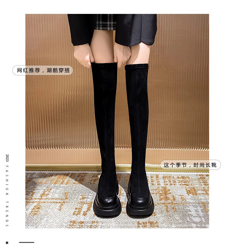 【小众设计师系列❗️绒面瘦瘦弹力靴】甜酷少女感爆棚「时髦不撞款」内空充裕不挤脚卡脚,日常穿它随性自在,秋冬新款百搭时尚小个子增高长靴,厚底防水台过膝靴L