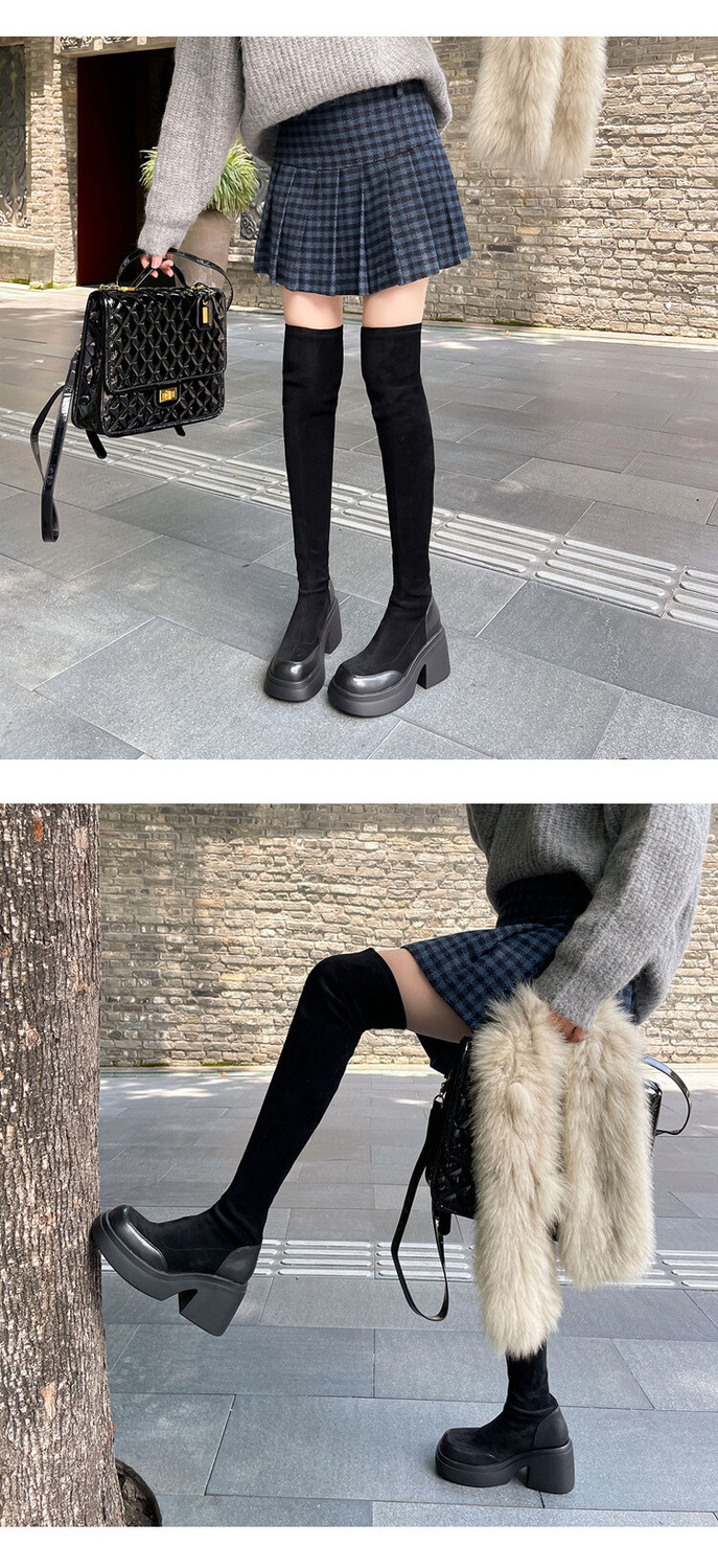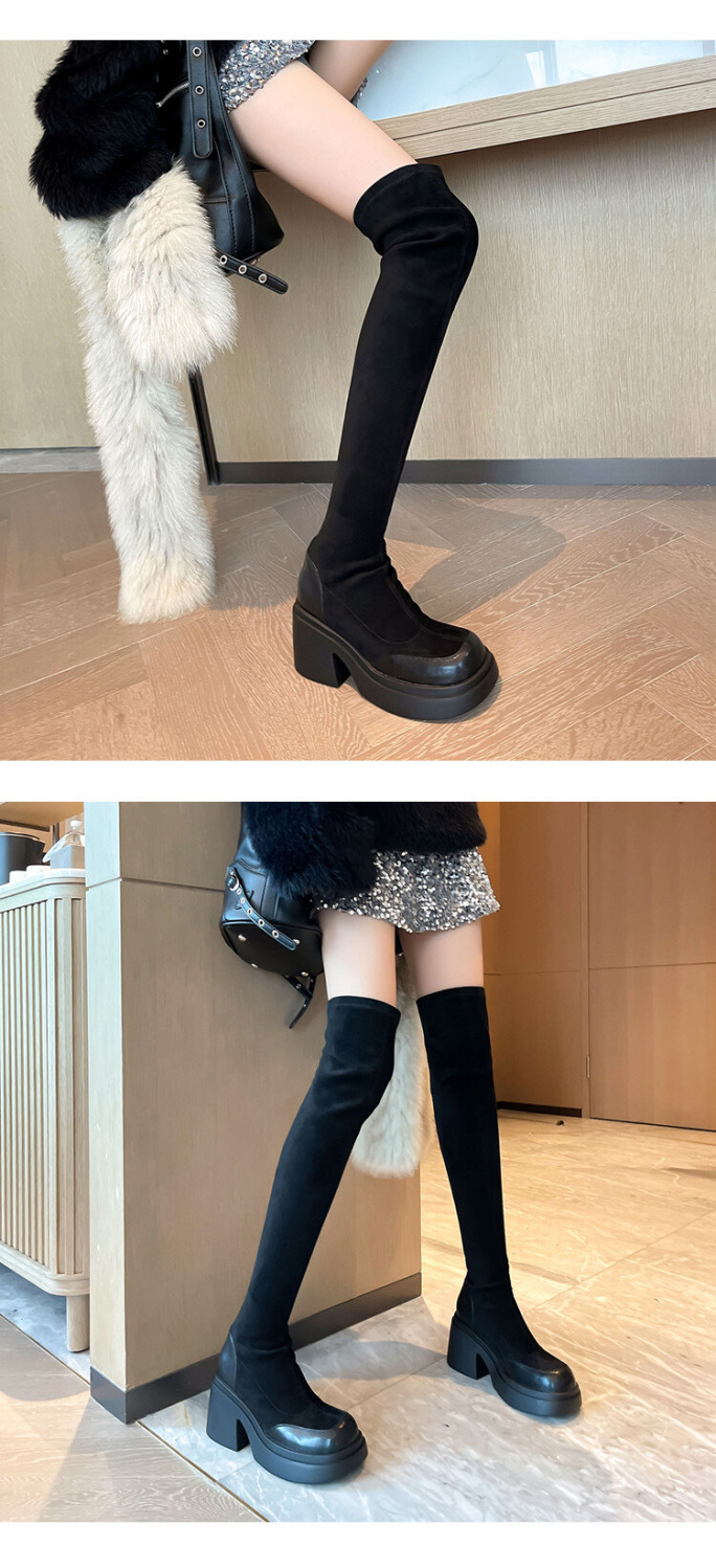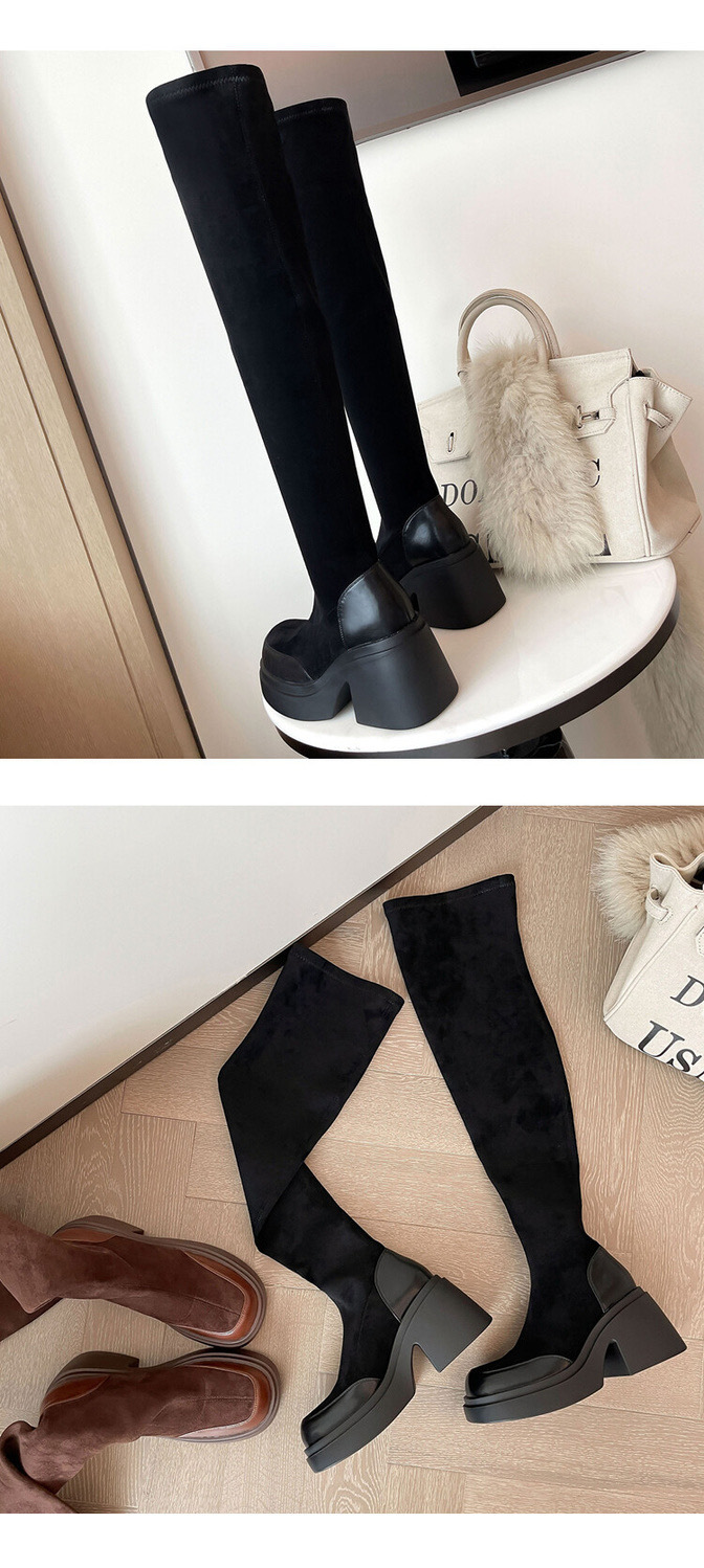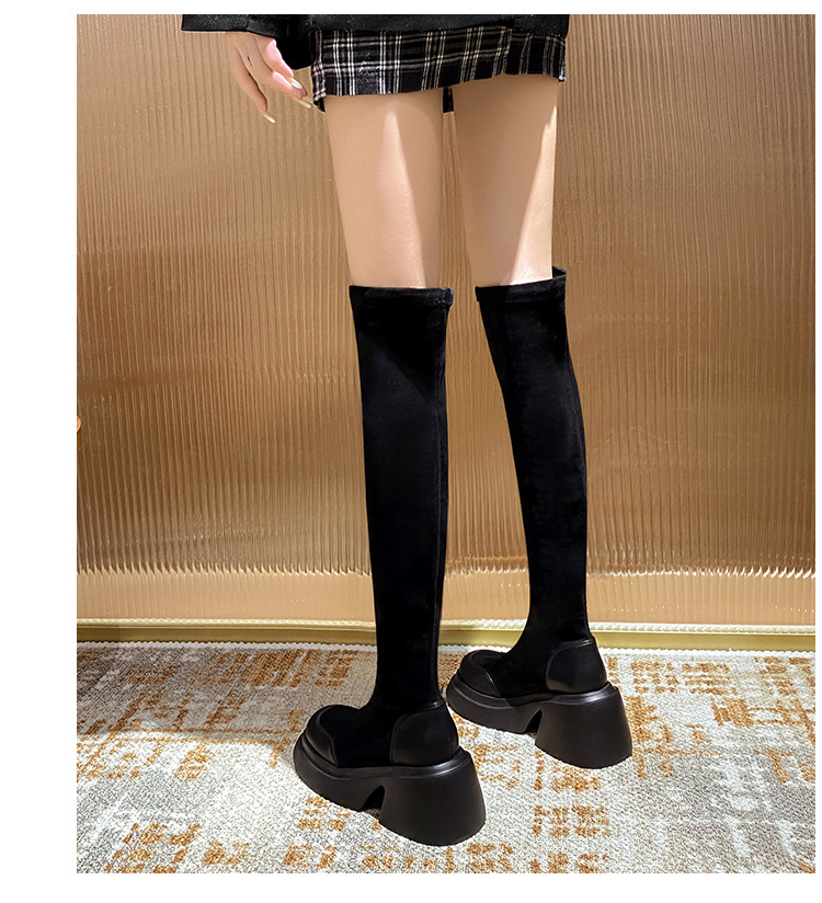 【小众设计师系列❗️绒面瘦瘦弹力靴】甜酷少女感爆棚「时髦不撞款」内空充裕不挤脚卡脚,日常穿它随性自在,秋冬新款百搭时尚小个子增高长靴,厚底防水台过膝靴L