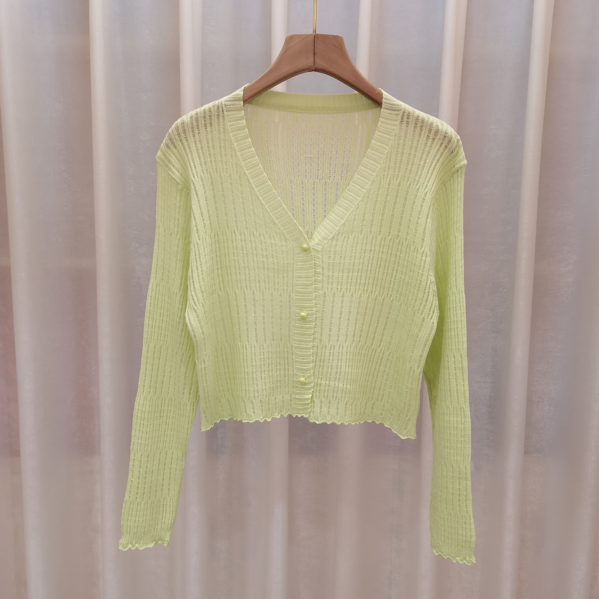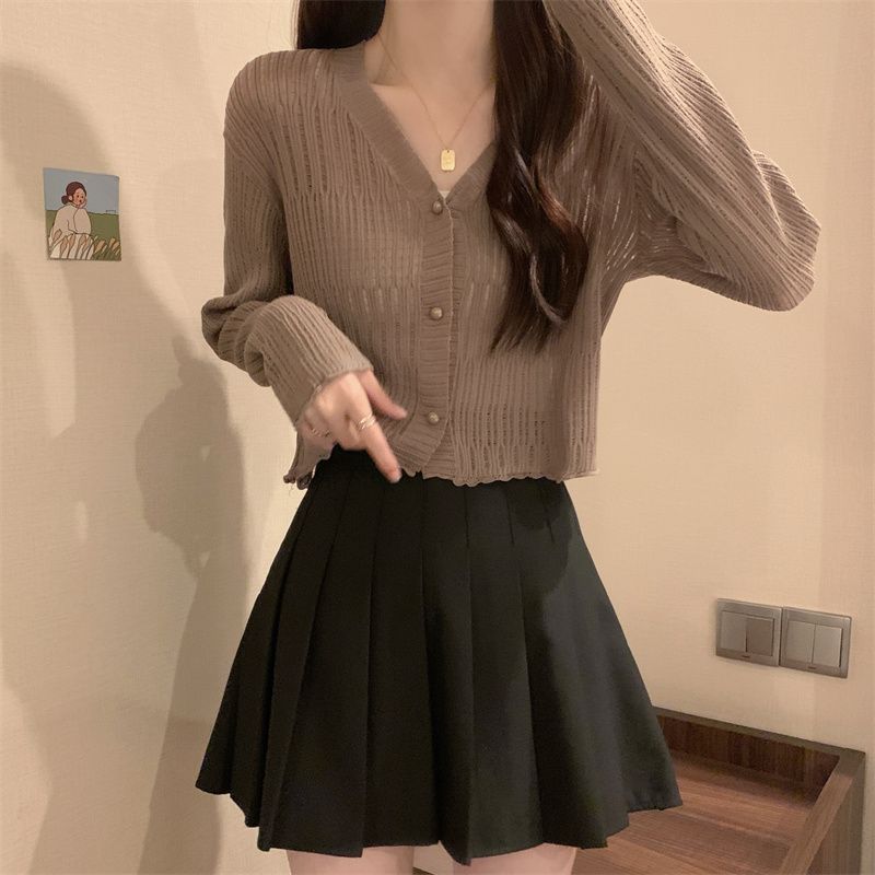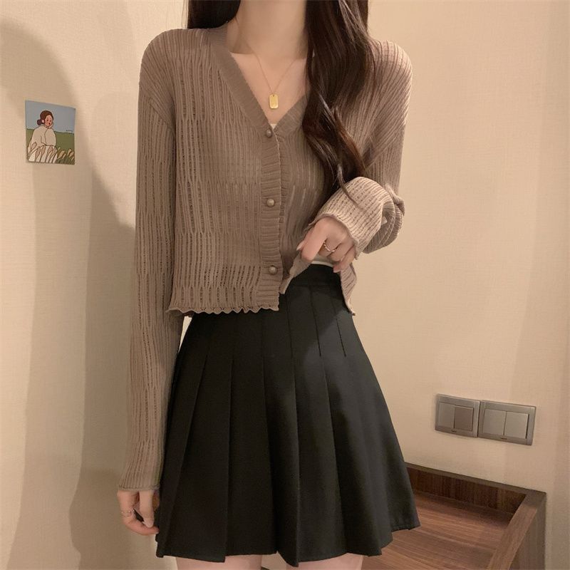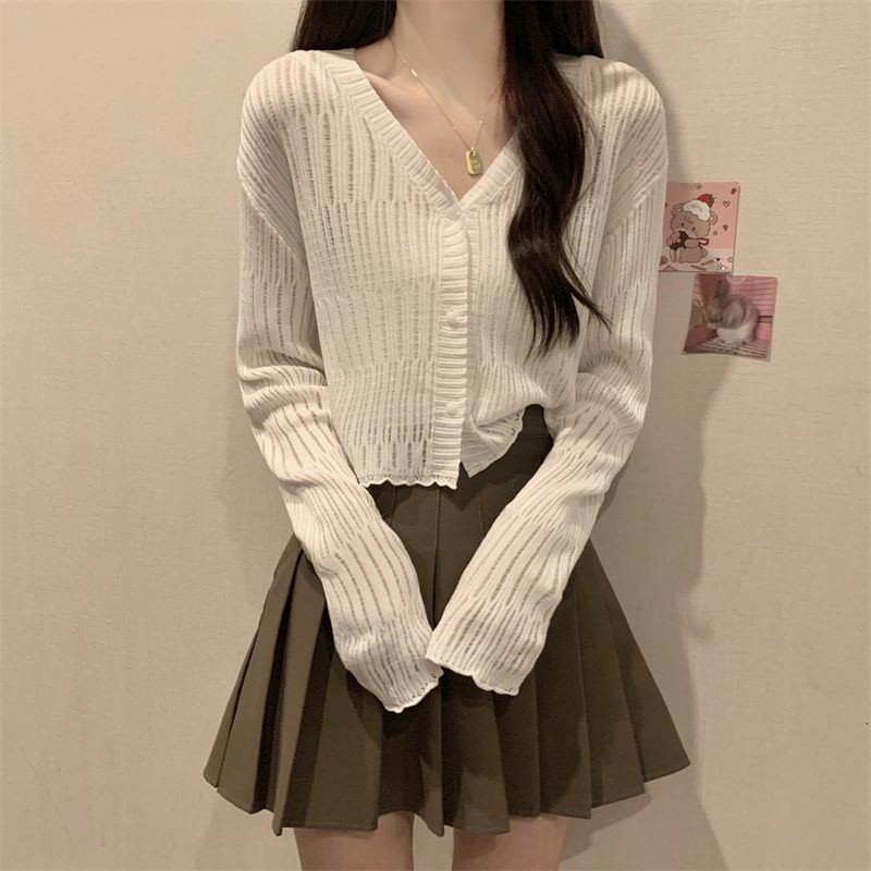 【新款长袖❗️木耳边V领针织衫】舒适亲肤,洋气减龄,显瘦好看!薄款女长袖防晒小开衫短款外搭上衣春秋