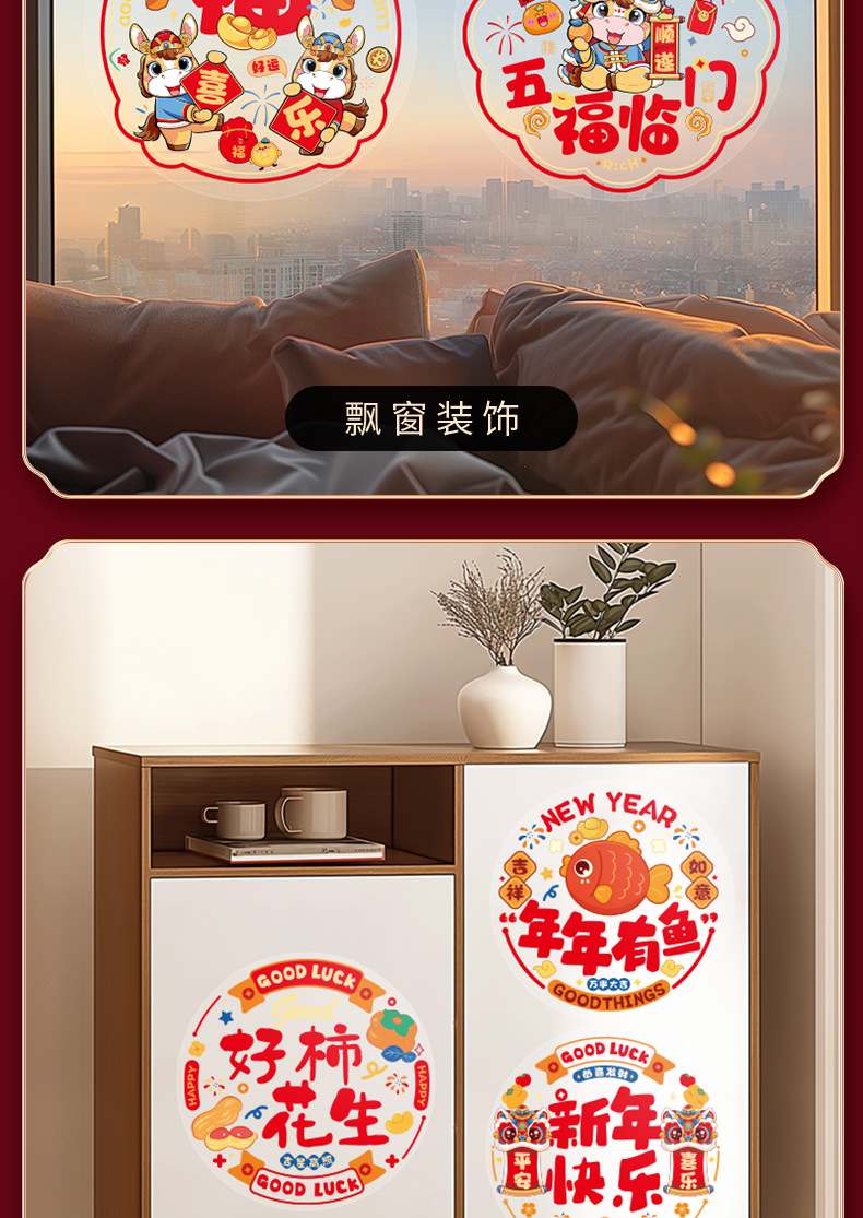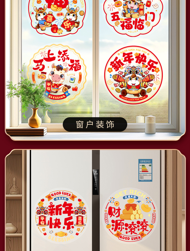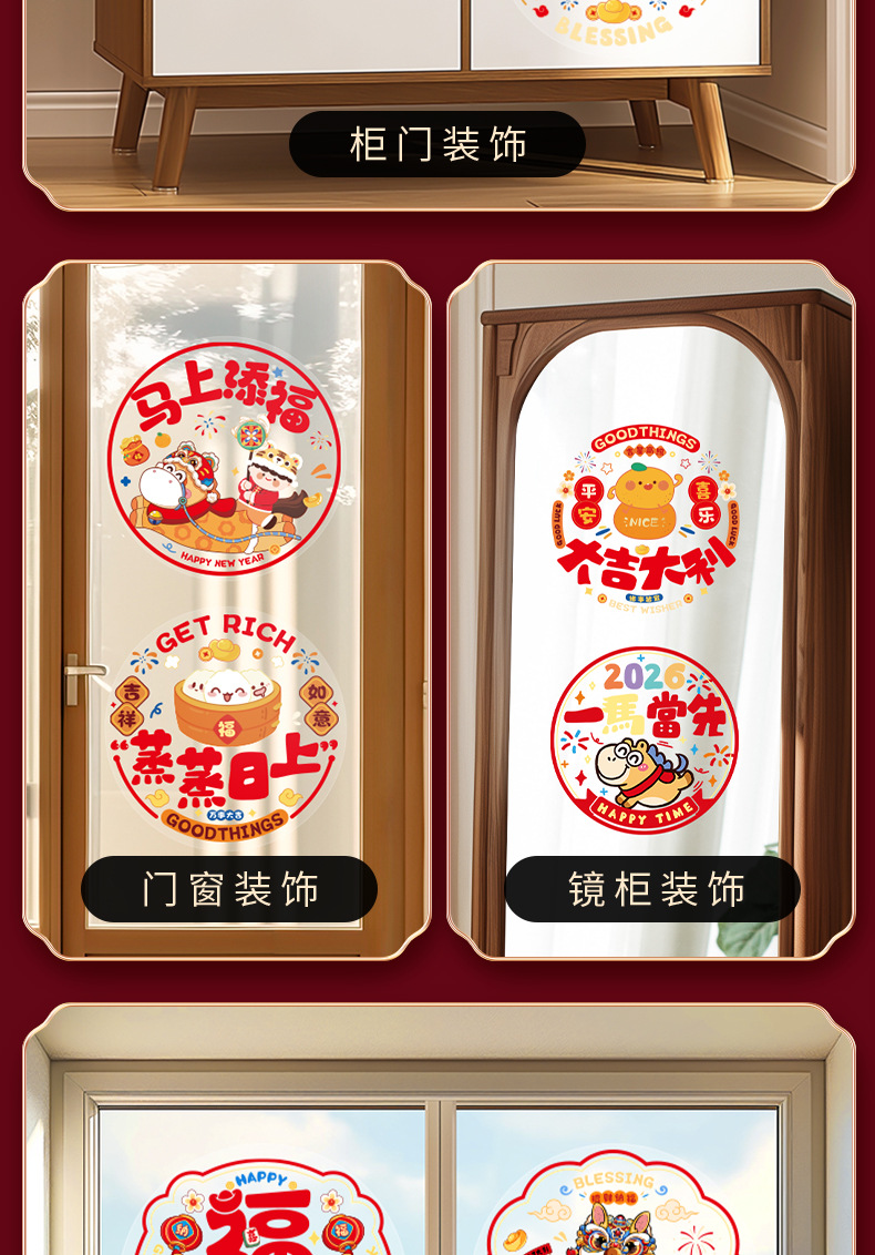 【马年福利❗️9.9抢30张🔥新年窗花】带福回家,添福添喜,好运连连!2026新年福字门贴贴玻璃贴纸过年春节装饰窗贴静电贴布置