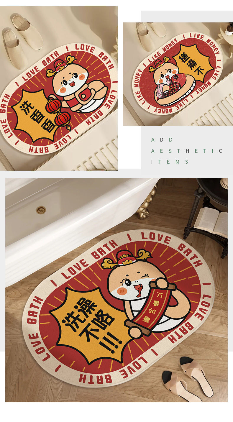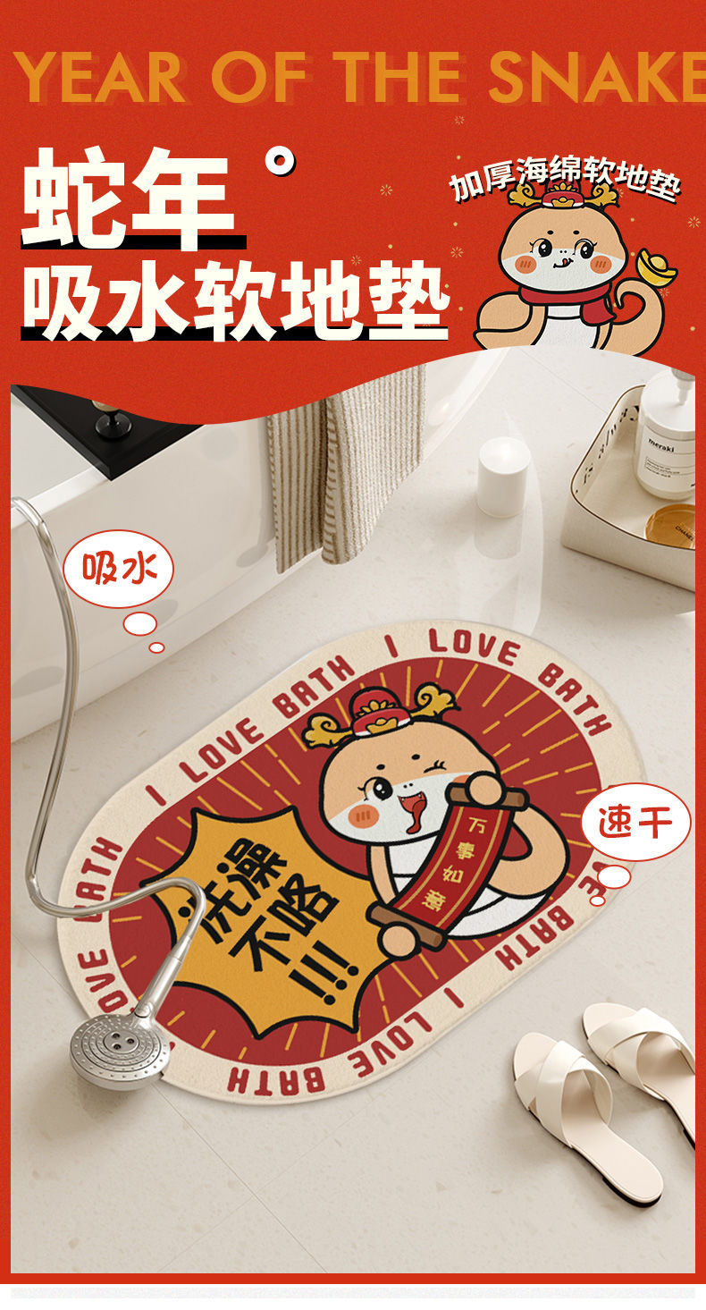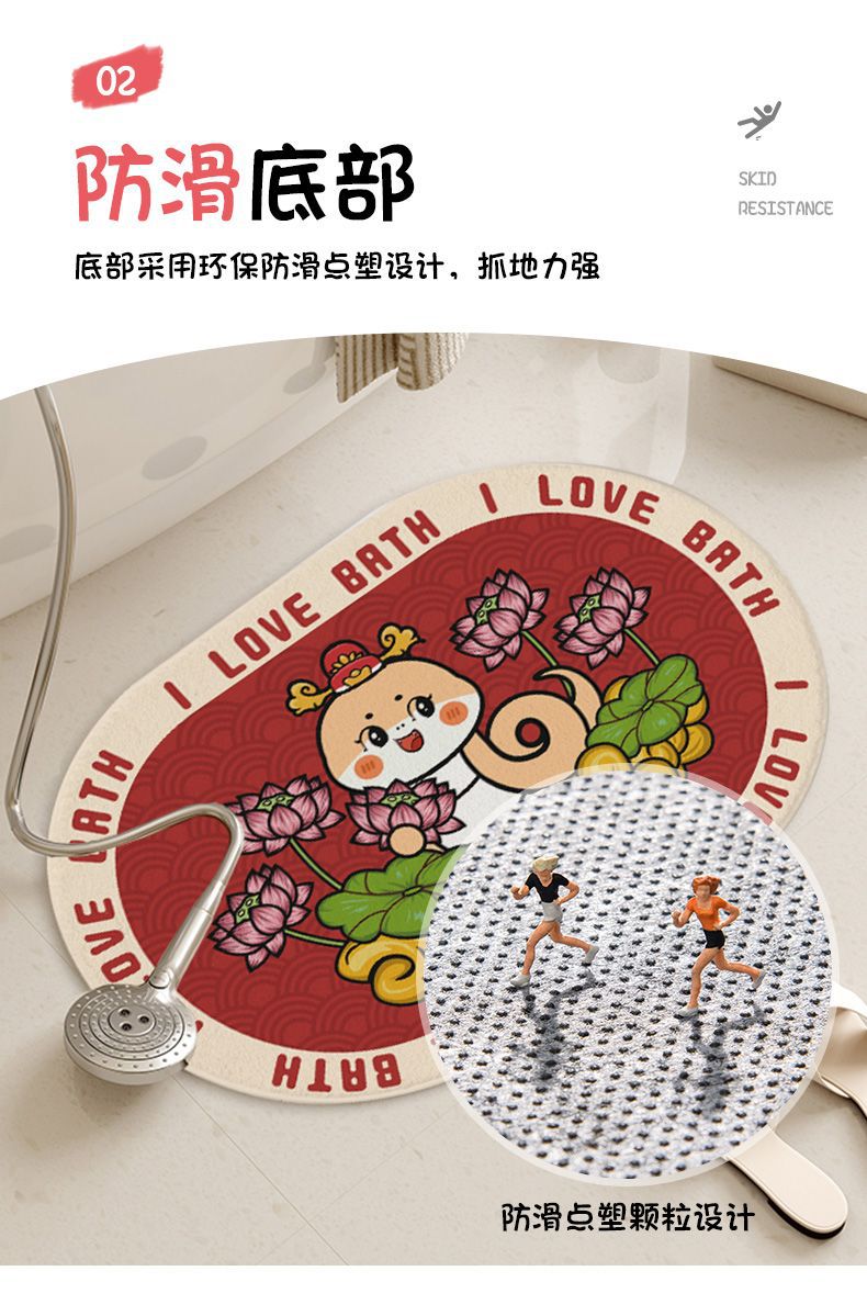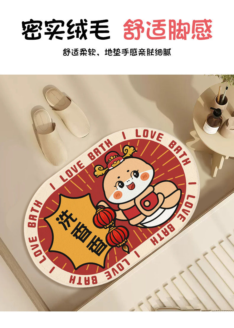 【吸水耐脏❗️浴室防滑垫】马年加厚吸水软地垫浴室吸水防滑速干,舒适柔软地垫手感亲肤细腻,脚垫新年卫生间家用厕所门口地毯QQ