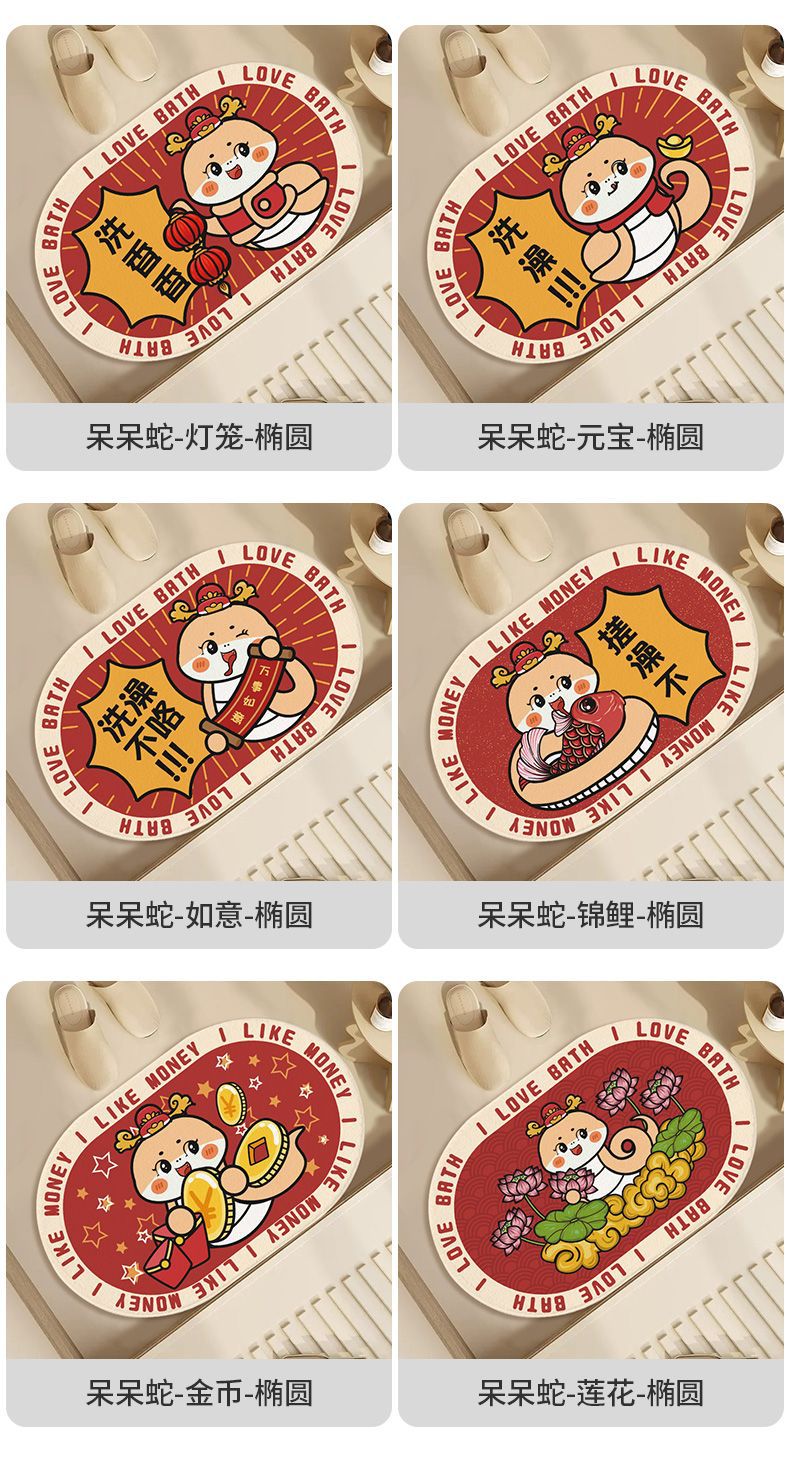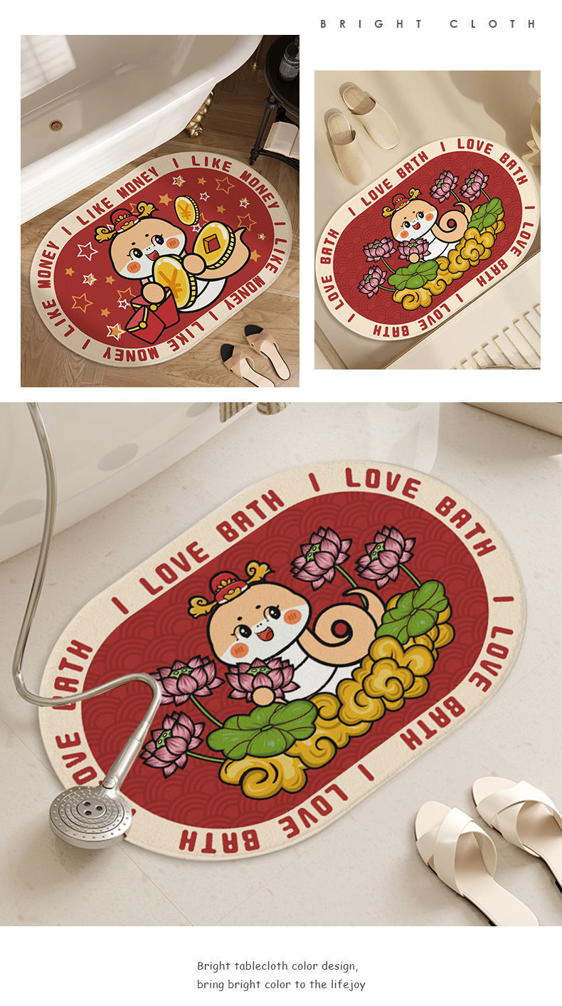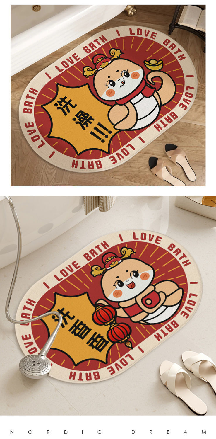 【吸水耐脏❗️浴室防滑垫】马年加厚吸水软地垫浴室吸水防滑速干,舒适柔软地垫手感亲肤细腻,脚垫新年卫生间家用厕所门口地毯QQ