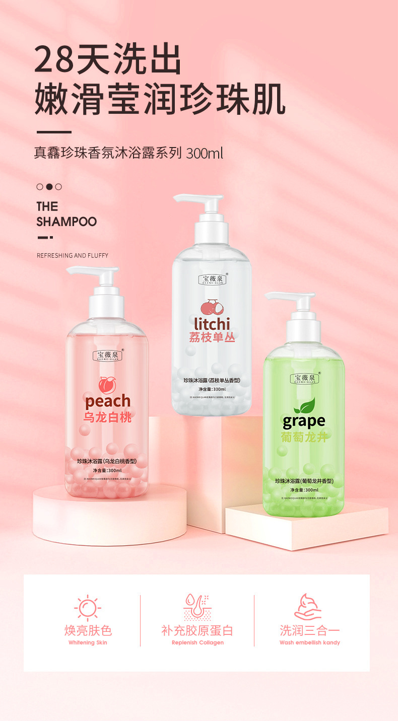 【呈现纯净的洗浴体验!向美博士珍珠沐浴露】荔枝白桃乌龙温和净肤去鸡皮深层清洁持久留香 商品图0