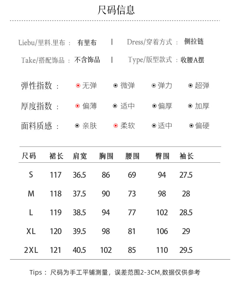 • 侧开衩+隐形拉链,侧缝微开衩设计,行走时若隐若现肌肤,为端庄增添一抹慵懒风情