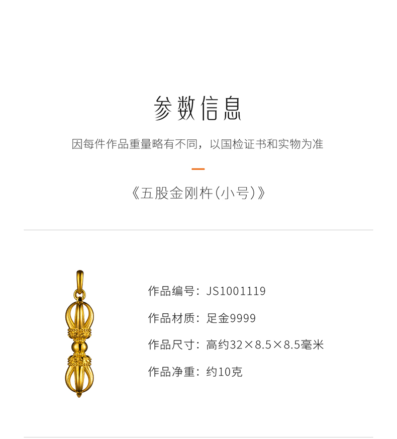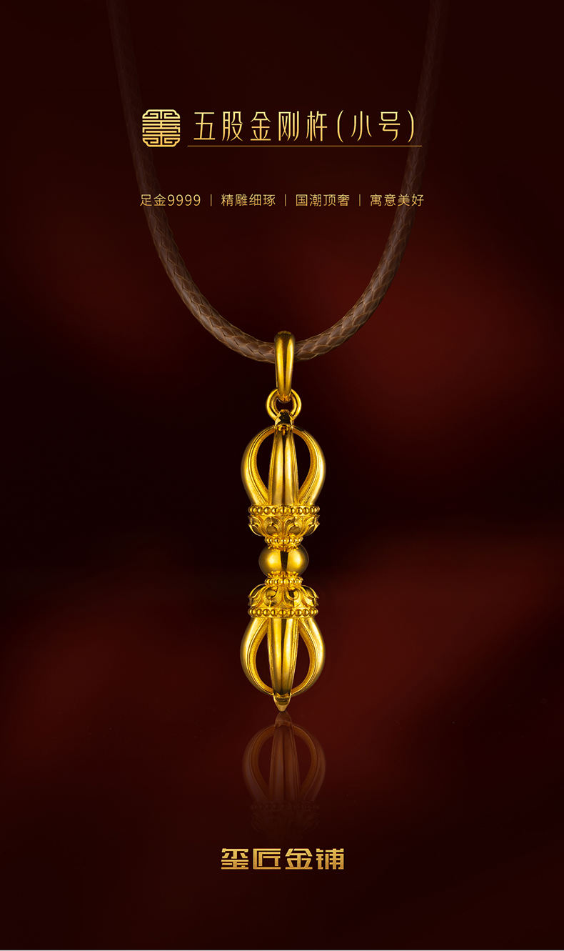 玺匠金铺《五股金刚杵(小号)》足金9999 黄金吊坠挂件礼物