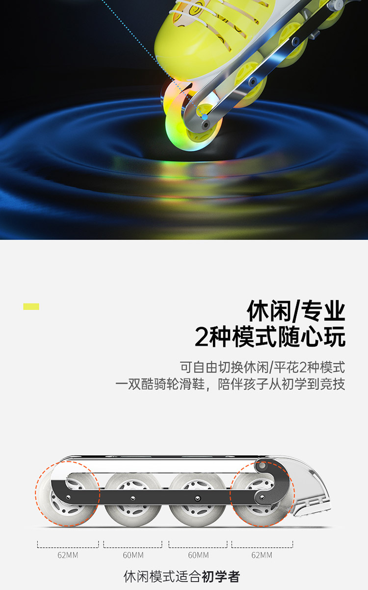 COOGHI酷骑儿童轮滑鞋R1 S+码 5-9岁可用