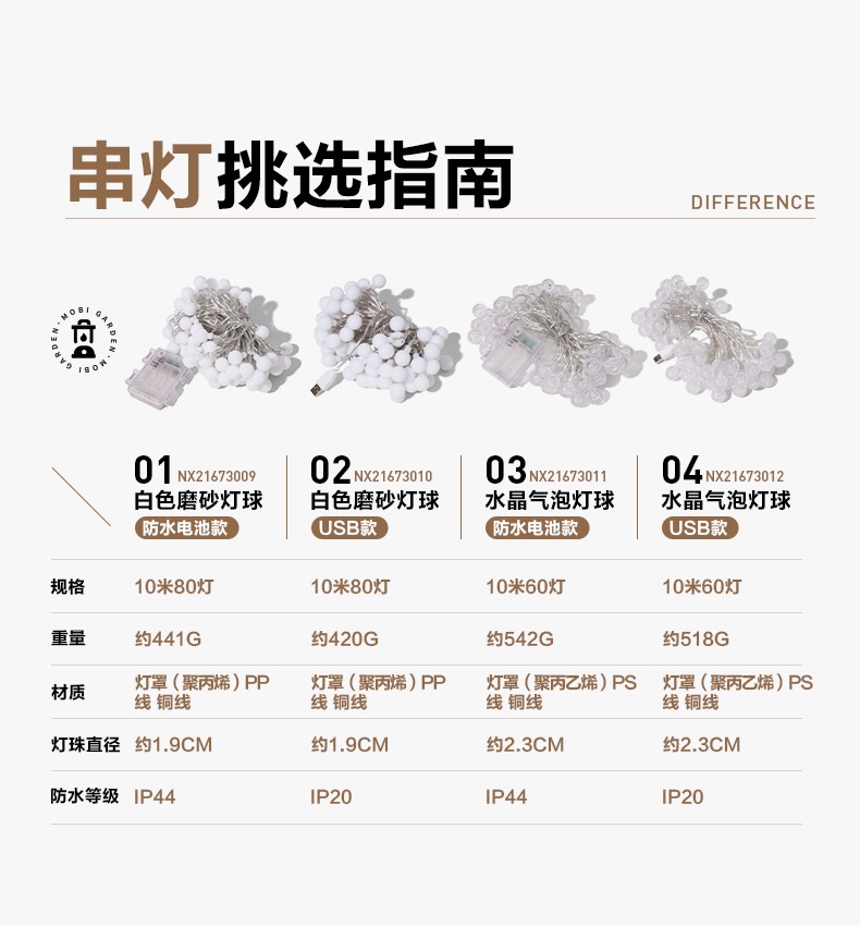 牧高笛 串灯 氛围灯 精致露营氛围装饰彩灯户外LED串灯室内浪漫满天星灯串XY