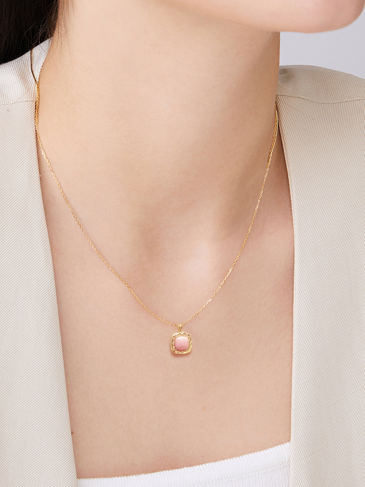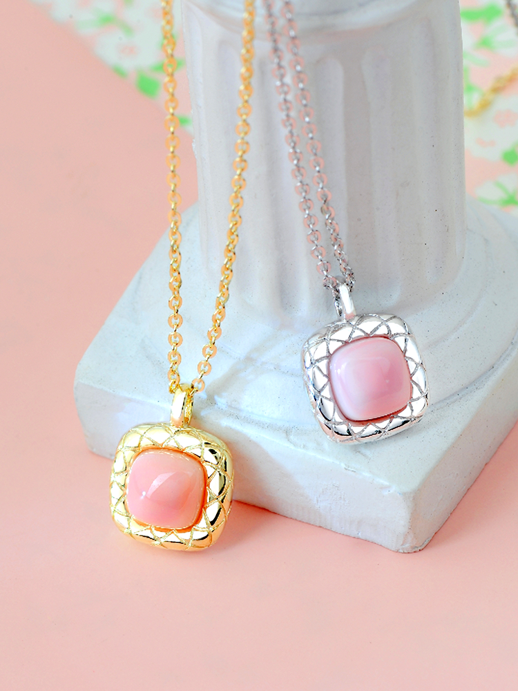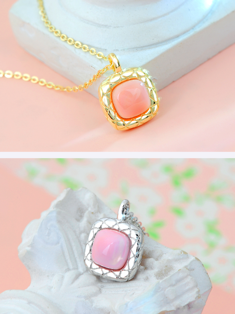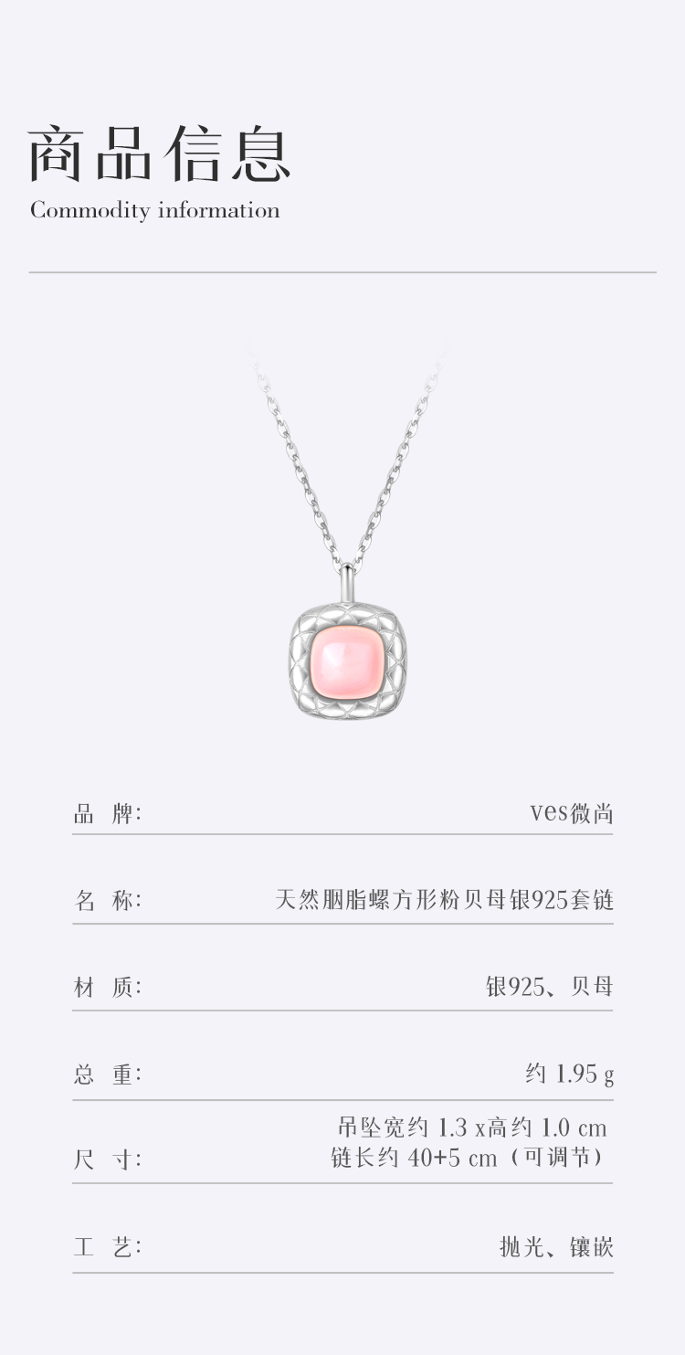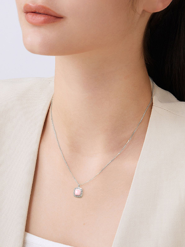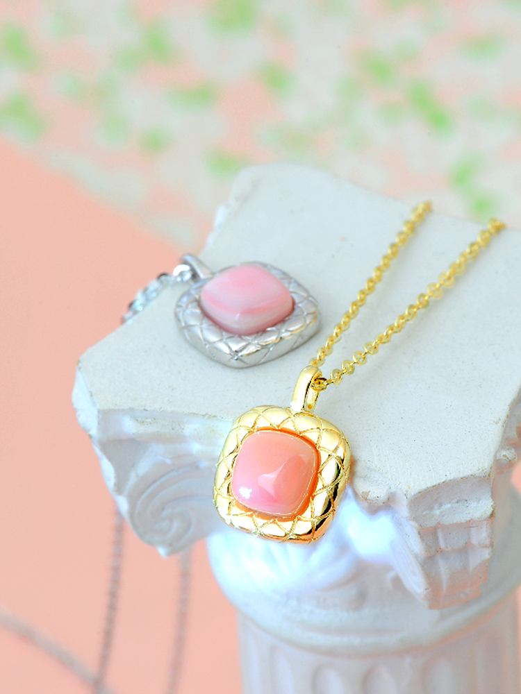 天然胭脂螺方形银925套链