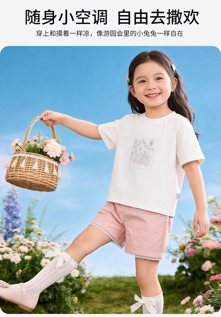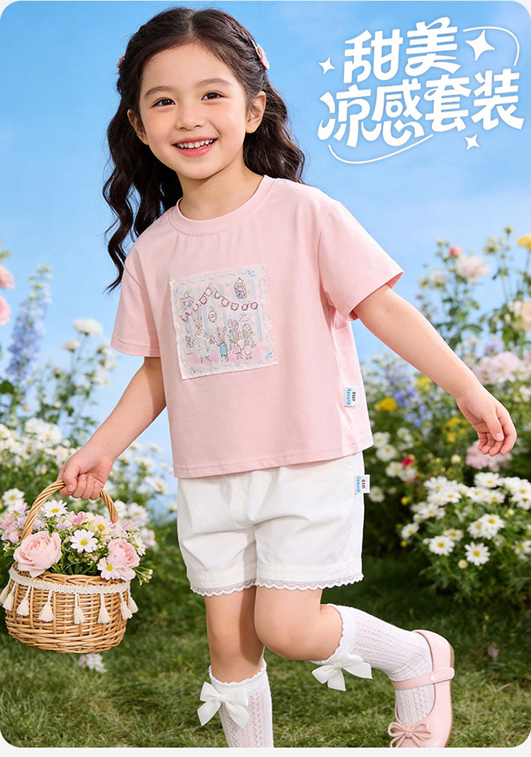 贝贝怡夏日女童冰感短袖套装ZB2FT021
