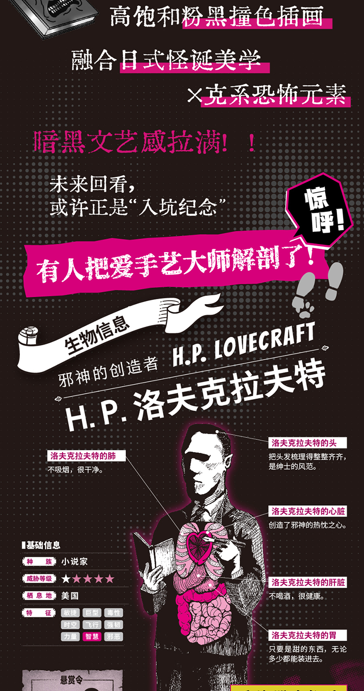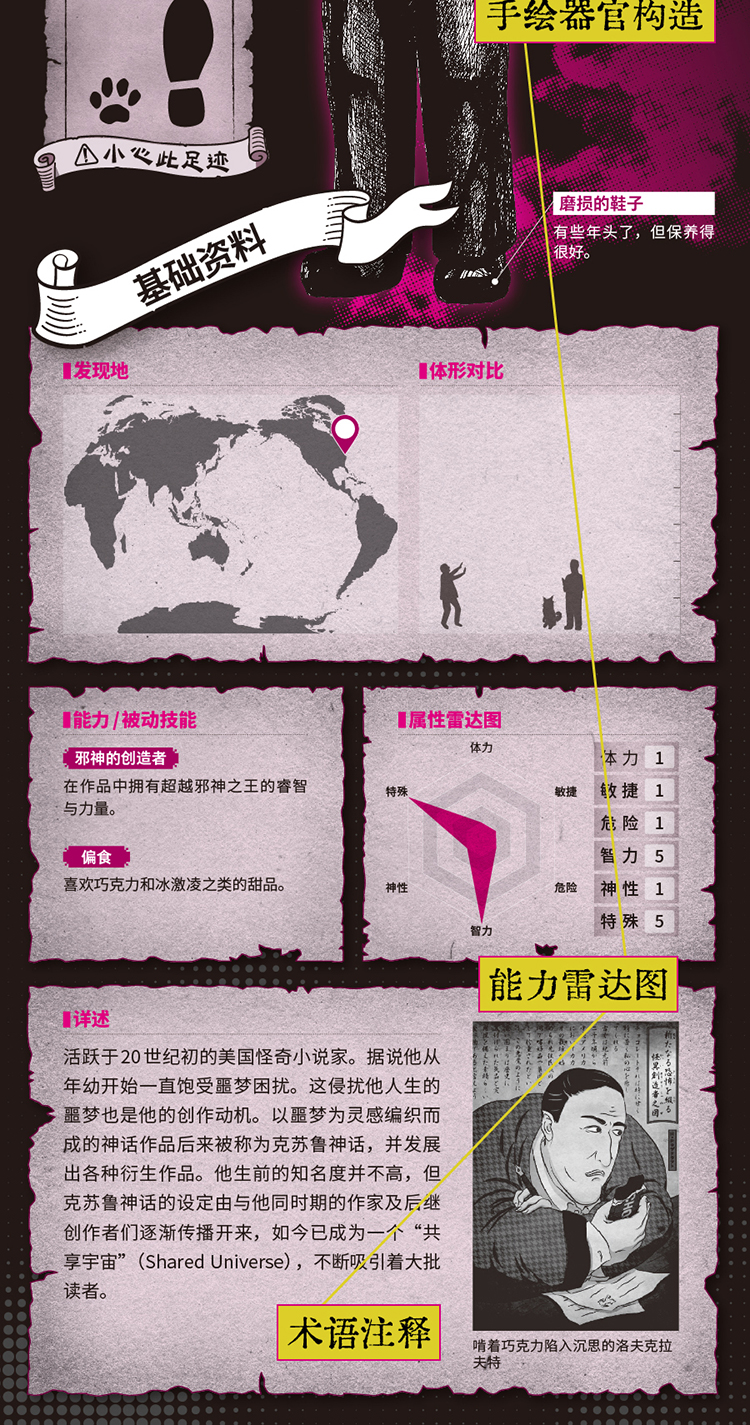 【首发卡牌收藏版-角色卡组】克苏鲁神话生物解剖图鉴(精装)。不可名状!45种克苏鲁神话生物完全档案!手绘解剖图+术语解释+能力雷达图,深入了解克苏鲁神话中的主要作品与角色。