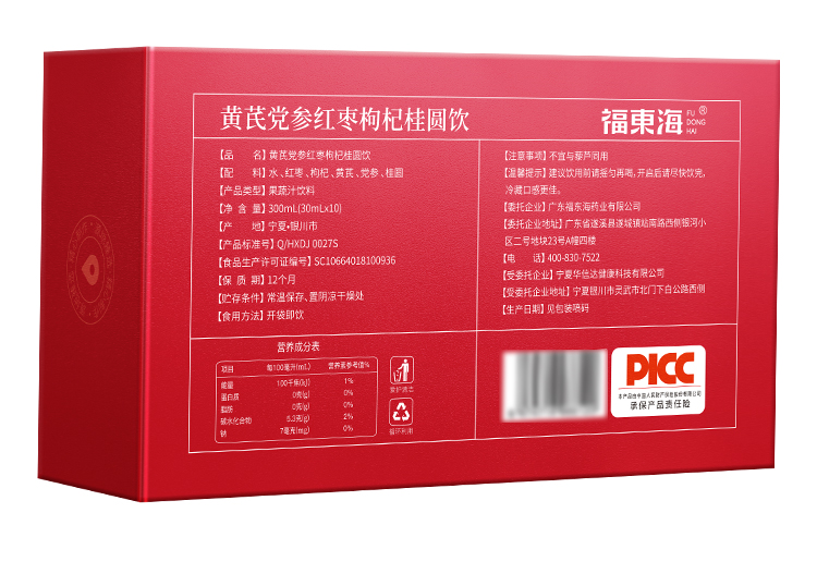 福东海 黄芪党参红枣枸杞桂圆饮300ml 女性元气五宝 女性气养生五宝茶饮血送礼颜养生果蔬饮料