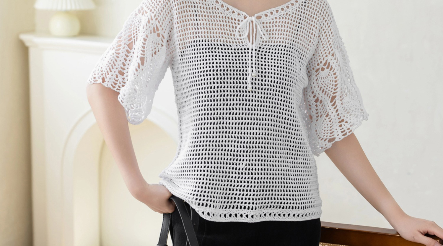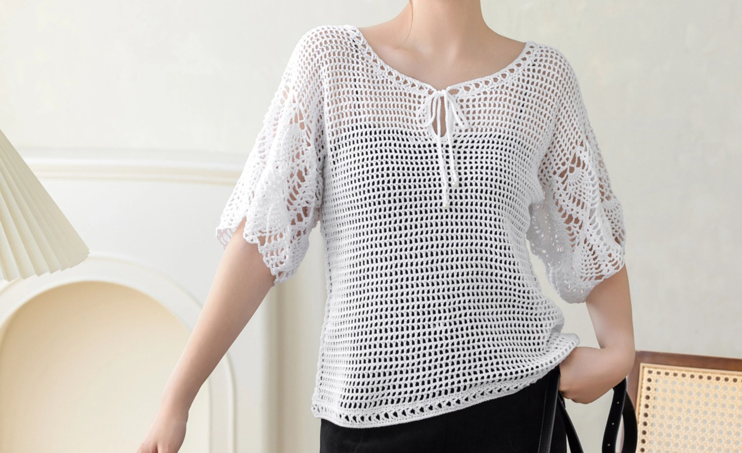 苏苏姐家清雅素缕上衣手工DIY钩针蕾丝毛线团上衣自制材料包