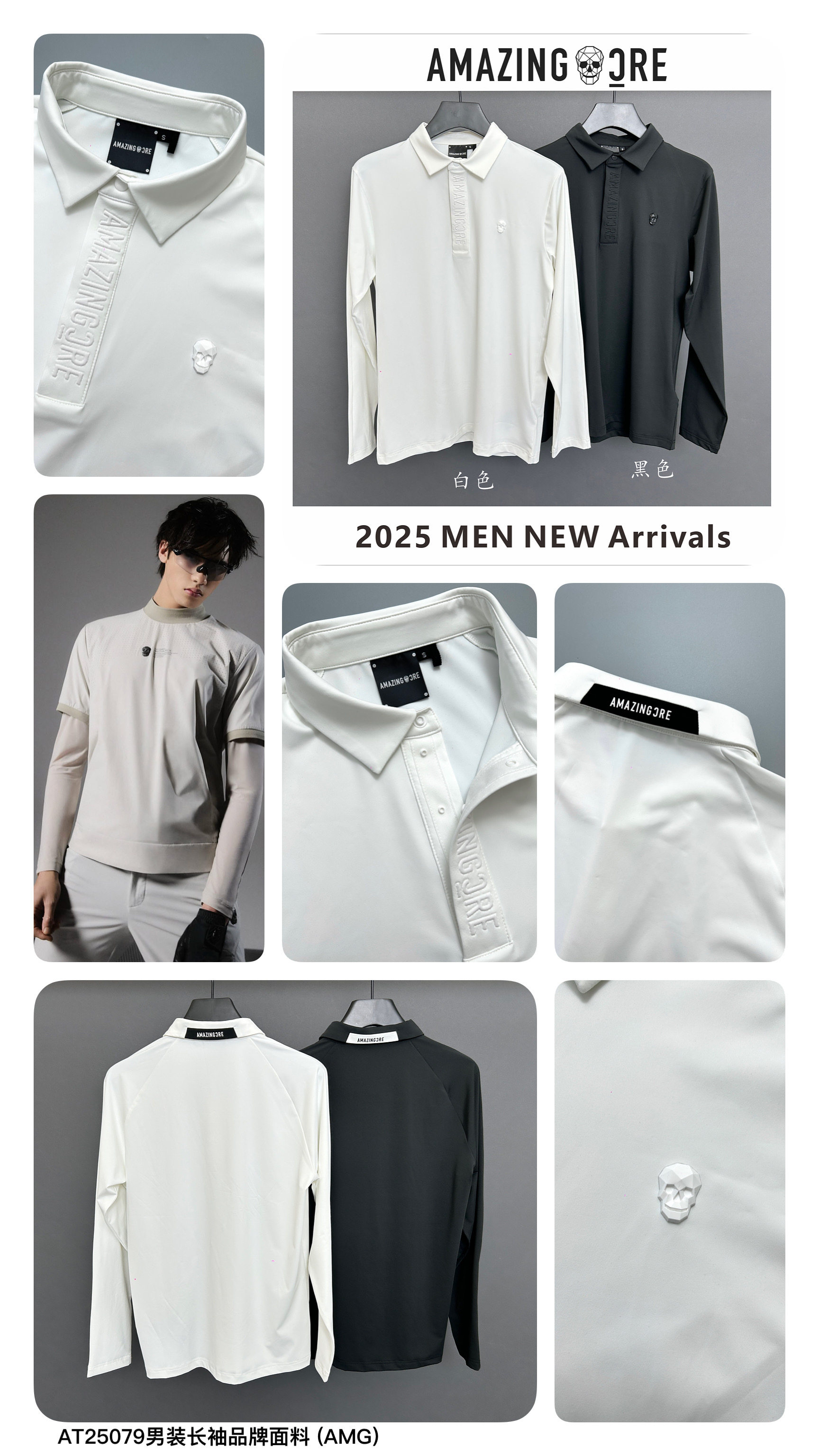高尔夫服装秋冬季新款男士长袖T恤简约黑白色速干休闲户外运动衣