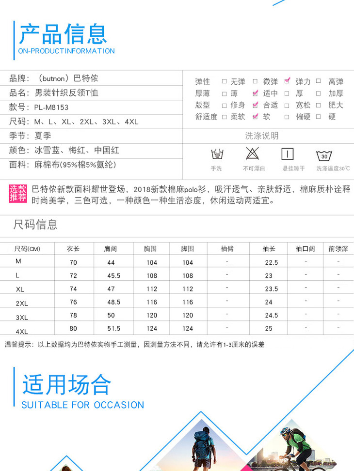 8153巴特侬 夏男运动休闲短袖T恤高含棉针织PLOL衫