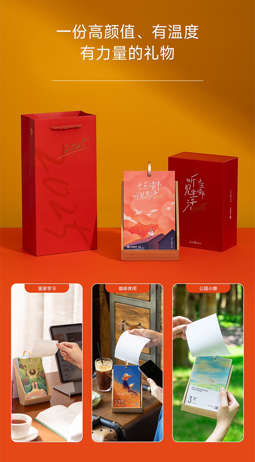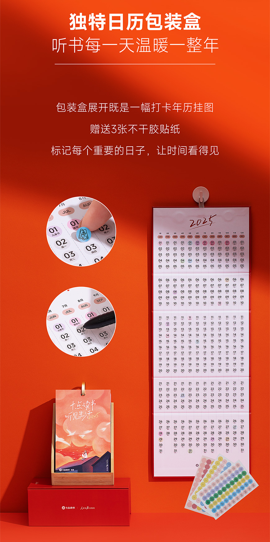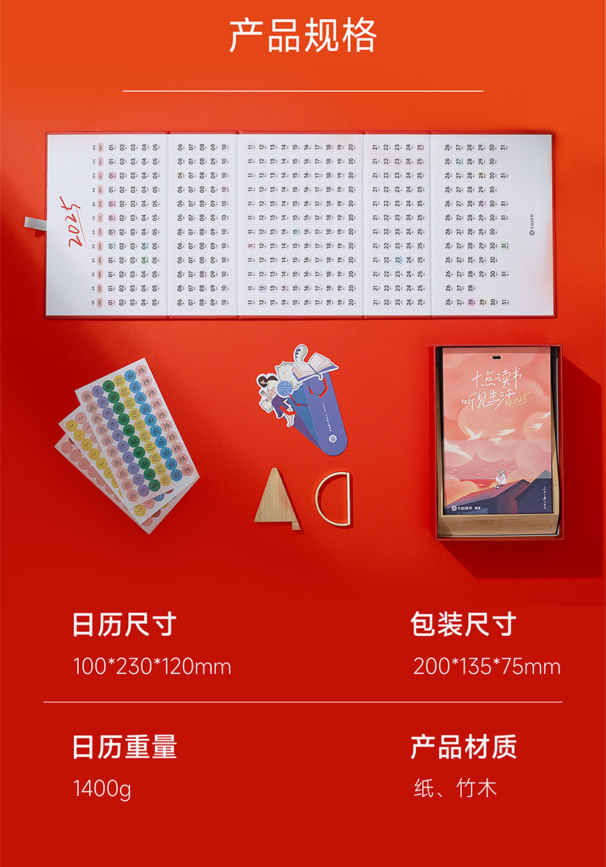 十点读书听见生活2025日历(红色)