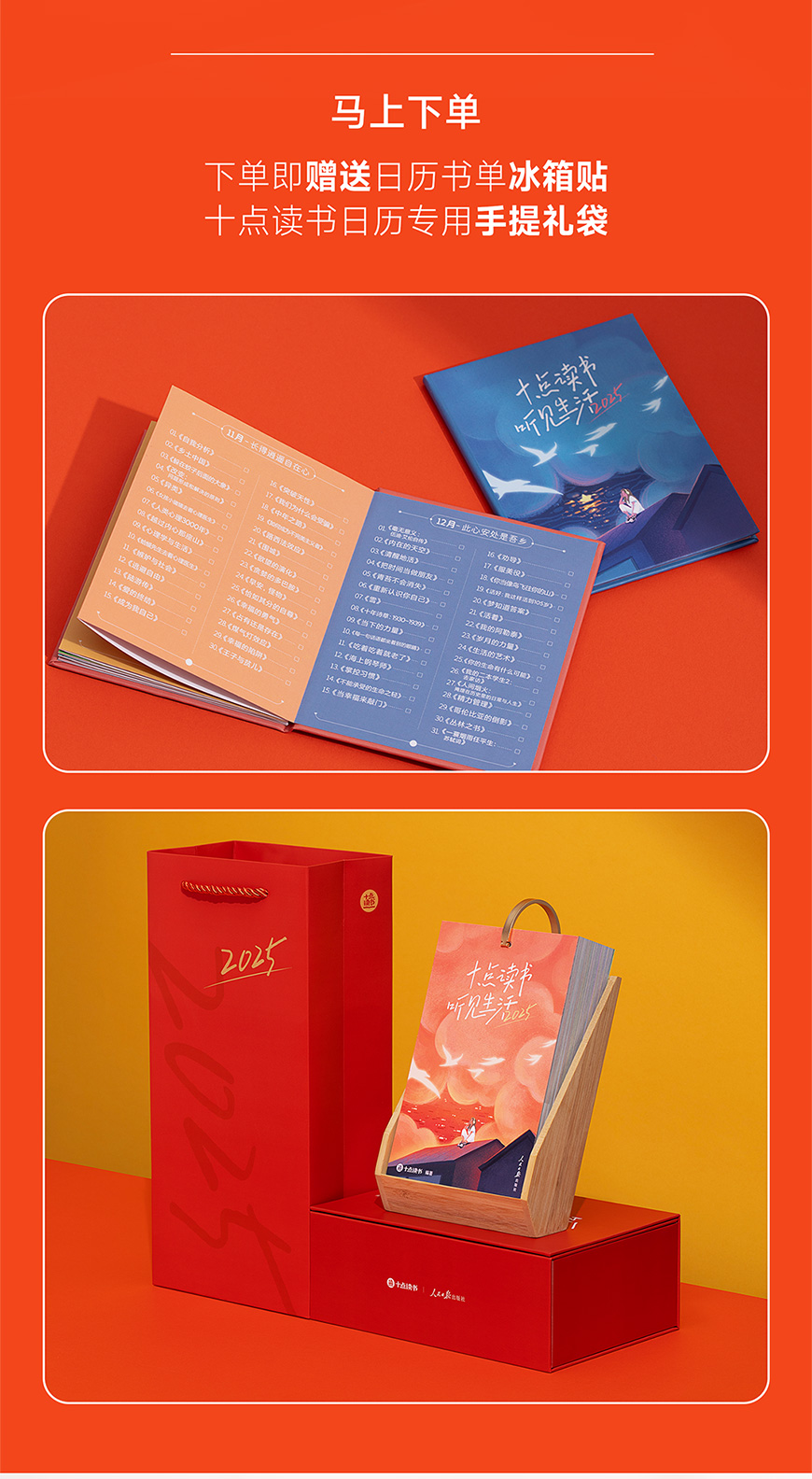 十点读书听见生活2025日历+手提袋+冰箱贴(红色)